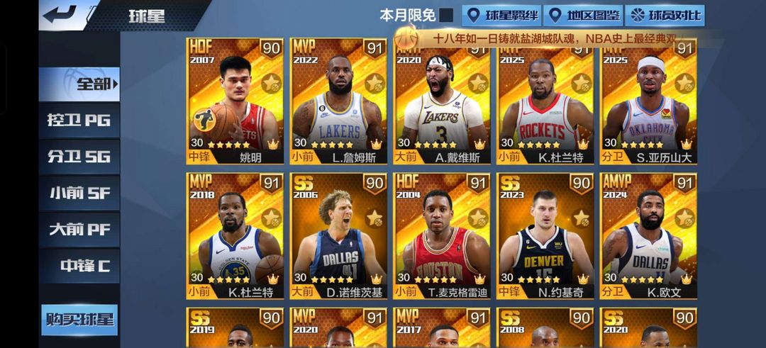 可排位新库里,新杜兰特,新詹姆斯,姚明二专,压力,天选浓眉,天选欧文,天选麦迪,天选威少,18天选