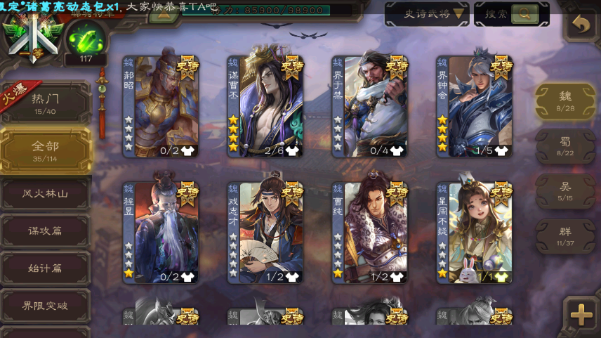 【有点将卡】回廊动神郭嘉-谋关羽-动谋曹丕界钟会-动界徐盛(大宝)动谋孙权留赞动谋貂蝉回廊杜预界左慈