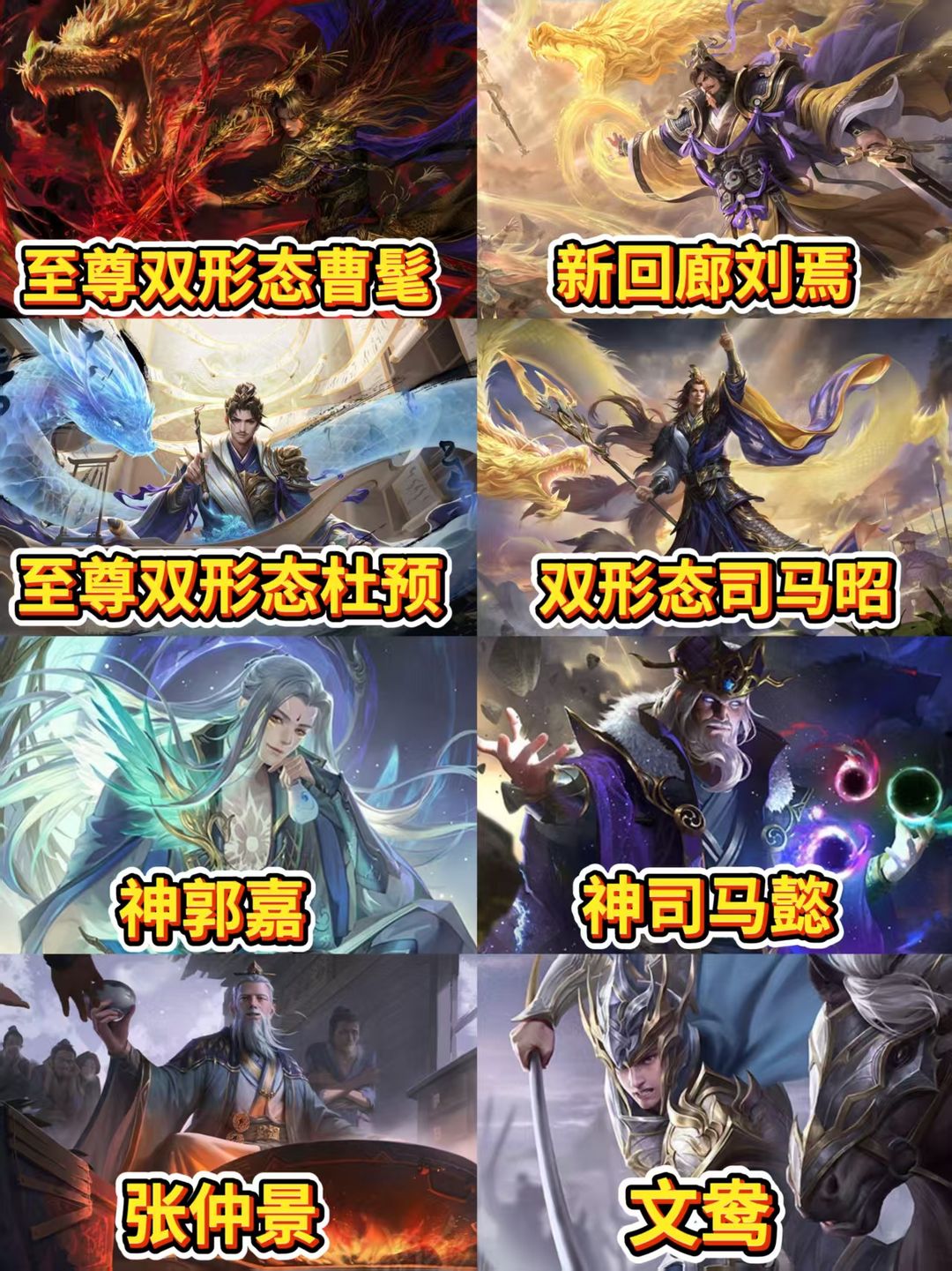 新回廊刘焉☀至尊双形态曹髦☀神郭嘉神司马懿☀双形态杜预文鸯司马昭☀张仲景阎象