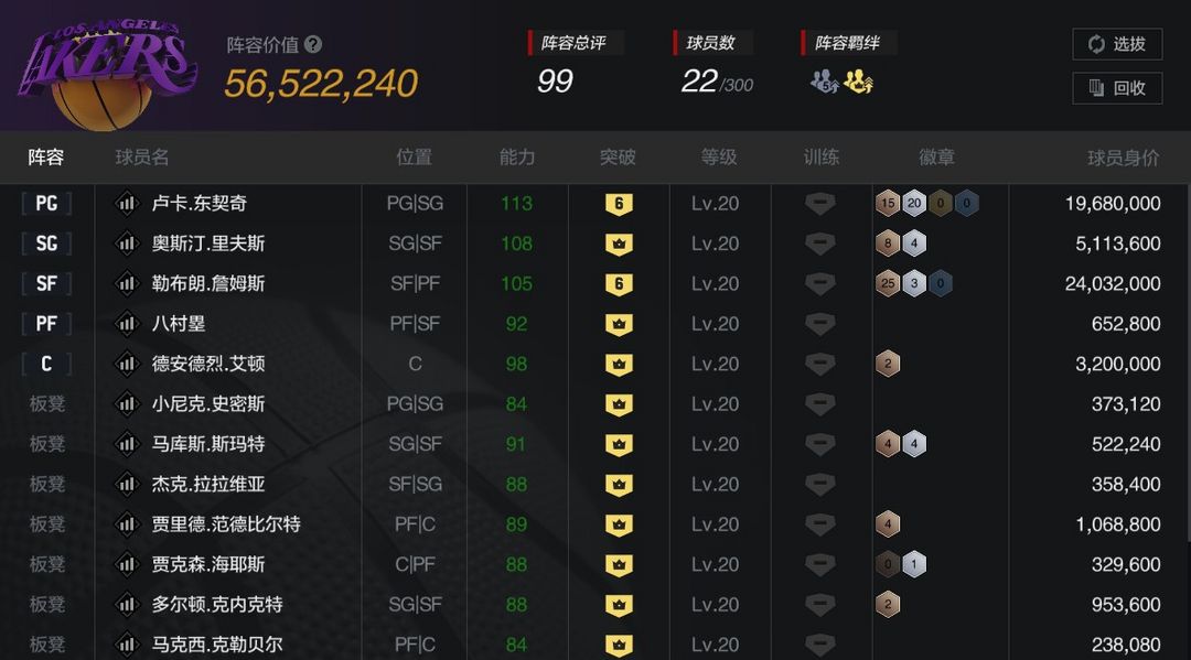 装备描述:2025–2026赛季洛杉矶湖人队套:卢卡.东契奇,奥斯汀.里夫斯,勒布朗.詹姆斯,八村塁,德安德烈.艾顿,小尼克.史密斯,马库斯.斯玛特,杰克.拉拉维亚,贾里德.范德比尔特,贾克森.海耶斯,多尔顿.克内克特,马克西.克勒贝尔,布朗尼.詹姆斯。