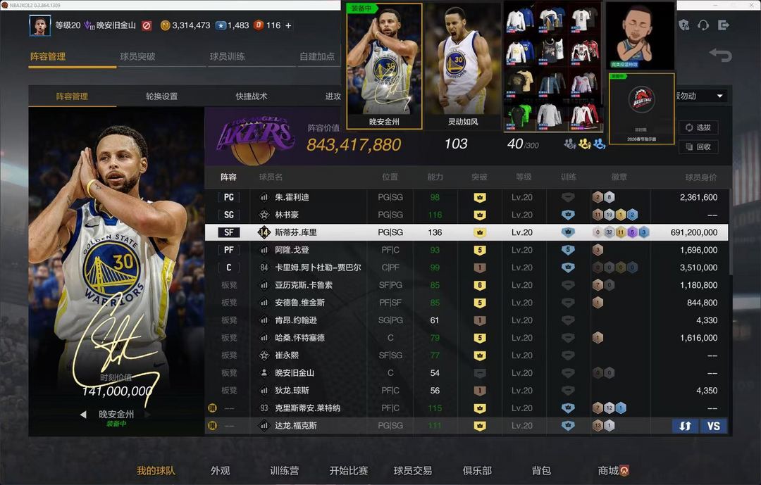 装备描述:金州晚安丨满突 双时刻库里丨射就完事了! (巨星段位)