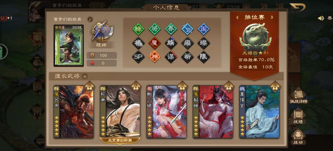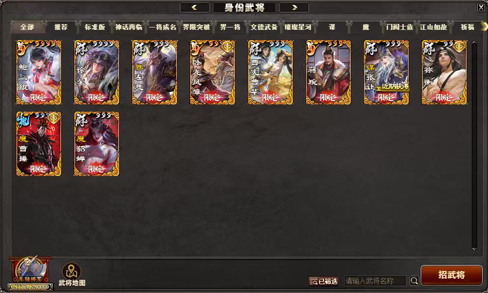 装备描述:11限定:祢衡 谋张让 魔曹操 魔貂蝉 三娘 徐荣 蒋琬 龙凤 二曹 其他武将看图