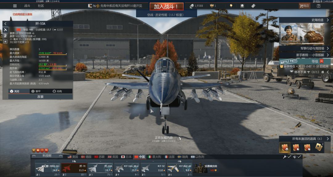 装备描述:中系空军,J10A,低空爬虫,可以体验国防压力