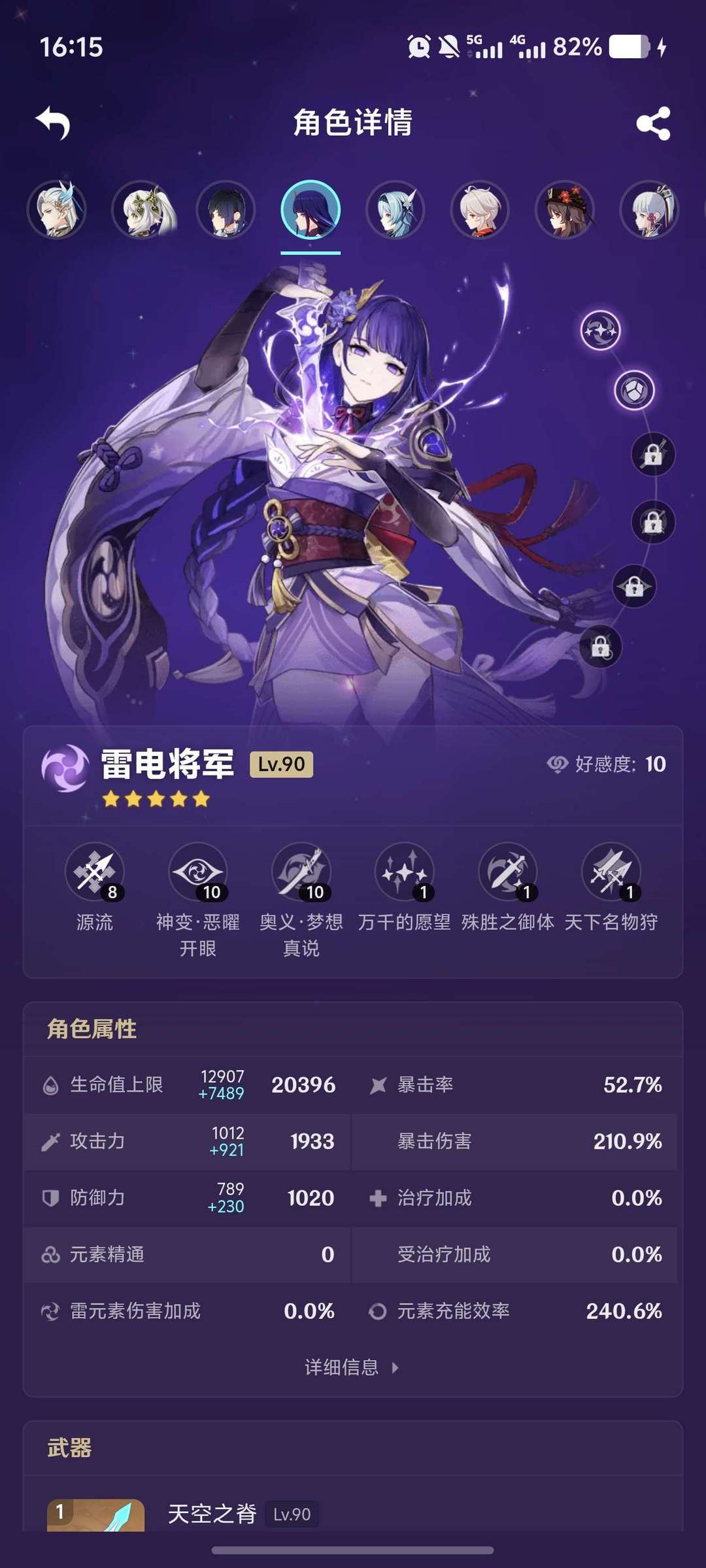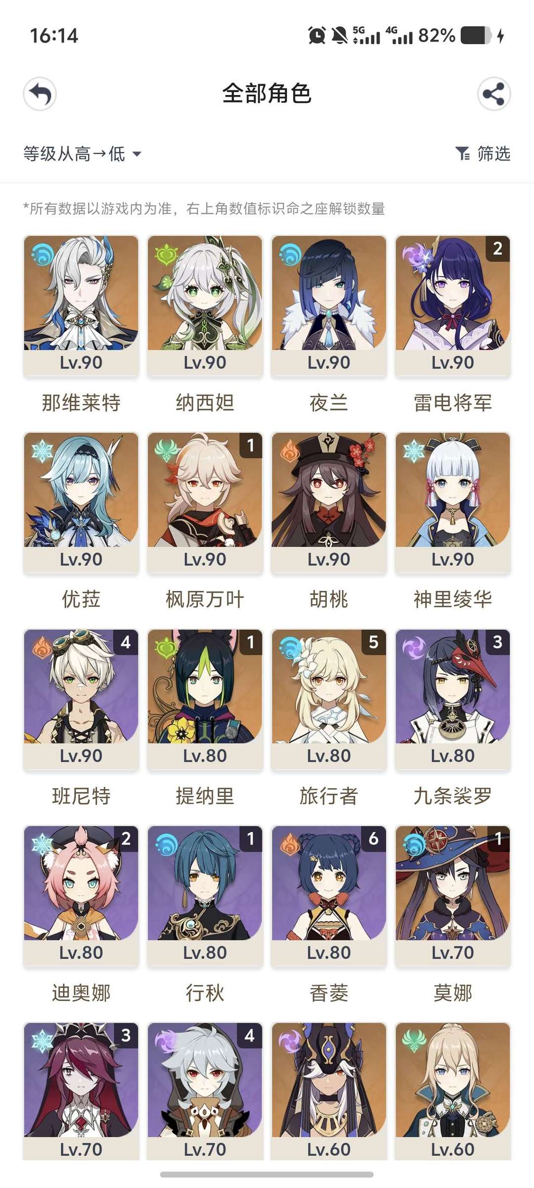毕业龙王,草神+专武,雷神2命,胡桃,万叶(千精)+毕业班尼特等等