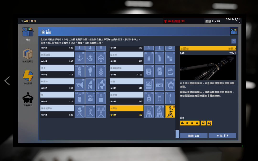 装备描述:您和您的超自然现象调查团队将进入一个充满着超自然现象的鬼屋,并尽可能的收集有关超自然现象的证据。您可以使用幽灵狩猎装置搜索并记录任何被幽灵骚扰的地点及证据,并将其出售给专业的幽灵清除小组,你可以选择从车辆、内部监控的摄像机或运动传感器来锁定团队的位置,并以此来帮助你的团队。