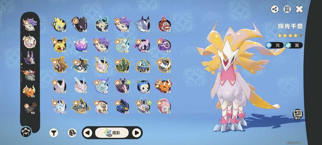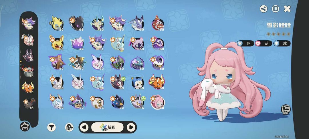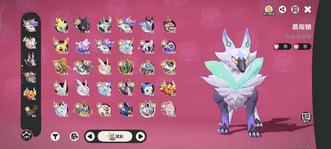 装备描述:两只异色炫彩雪影娃娃,异色炫彩恶魔狼 8星迪莫,伤害拉满 还有很多炫彩精灵,都是满级的,账号练度很可以,