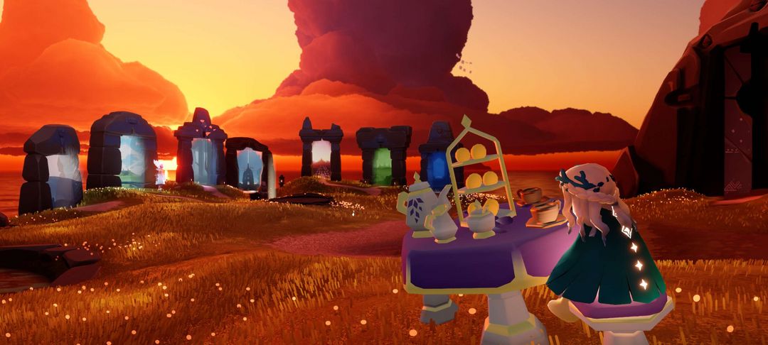 拥有蓝色专属斗篷(可进入办公室),活动限定头饰,以及周年庆专属斗篷,可回顾周年庆场景,花溪茶桌等。
