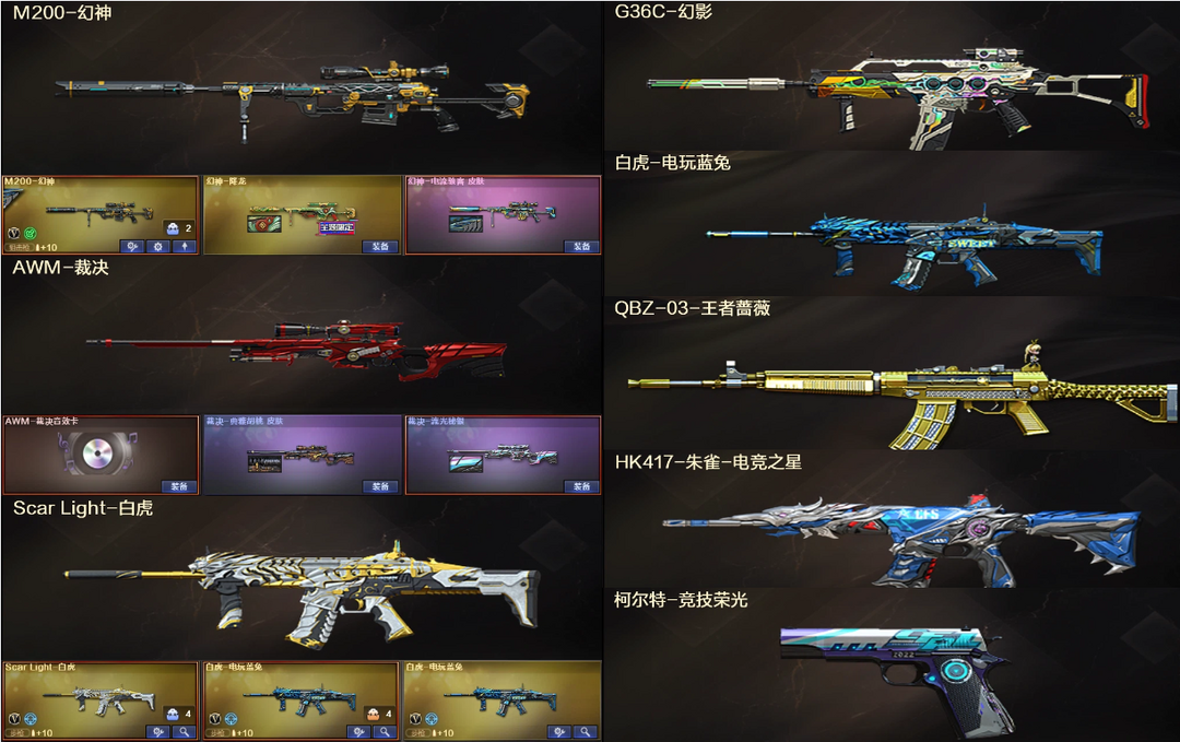 爆破装✨幻神降龙电流骇客+裁决典雅胡桃羽挚音效卡✨白虎QBZ蔷薇G36C幻影朱雀+柯尔特✨4防小乔春