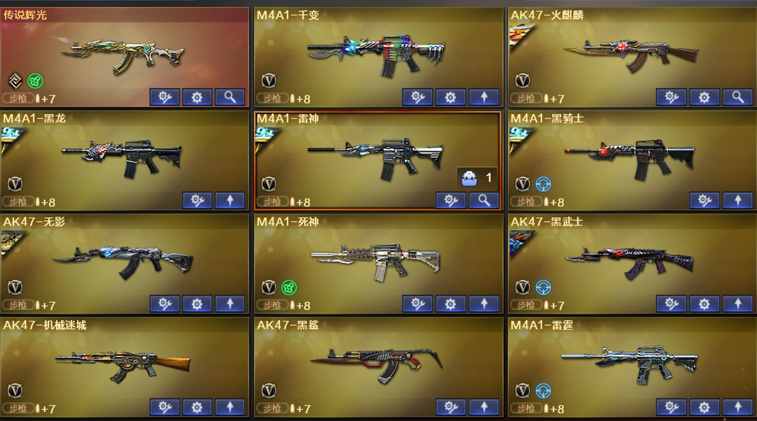装备描述:音效:幻神,ak,m4,裁决,毁灭,每种抢都有皮肤