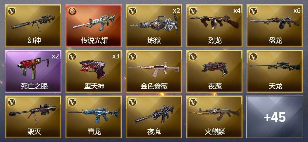 百V|传说光耀|M200幻神|QBZ|六盘六烈|7套投掷夜魔|音效:98K,雷神,黑骑士,皮肤多