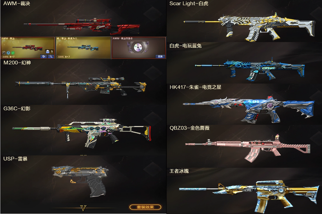 爆破❤幻神+裁决音效卡❤G36C幻影QBZ蔷薇+白虎朱雀王者冰魄❤USP雷暴+3防樱