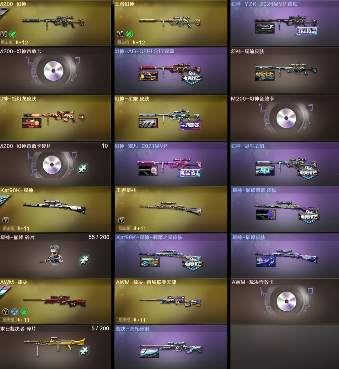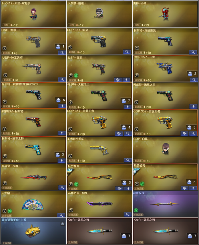 限制: 租号3次及以上 |装备描述:王者武器:AK47-雷暴王者;龙啸-王者堕天神;斩神刀-雷暴王者;王者冰锋;王者破空枪刃;王者雷影;炫金黑龙;王者星霆;青龙之魄;烟雾弹-雷霆王者-觉醒版;王者之击-觉醒版;王者之烈-觉醒版;王者之决-觉醒版;王者星神-觉醒版;王者龙血-觉醒版;COP 357-雷霆王者-觉醒版;王者森决-觉醒版;王者之魂-觉醒版;王者凤吟;王者之势-觉醒版;炫金骑士;Barrett-雷霆王者-觉醒版;M4A1-雷霆王者-觉醒版;高爆手雷-雷霆王者;闪光弹-雷霆王者-觉醒版;雷霆王者之锋-觉醒版;王者幻神-觉醒版;王者之心-觉醒版;王者白虎-觉醒版;王者之魄闪光弹 英雄武器:柯尔特-无冕之王;炽芒蝶刃;加利尔ACE-天袭;Barrett-碧霄极光;USP-冥王;高爆手雷-玄豹;烟雾弹-玄豹;闪光弹-玄豹;丛林匕首-玄豹;机械迷城-穹宇;传说圣谕;FAMAS G2-天戎;QBZ03-天罚;G36C-幻影;柯尔特-荣耀世冠白鲨2023;传说幽瞳;RPK-盘龙;超新星-热带奇洋;龙啸-热带奇洋;COP 357-云龙;QBZ03-云龙;闪光弹-云龙;烟雾弹-云龙;高爆手雷-云龙;云龙扇;黑武士-锦绣游龙;手雷-