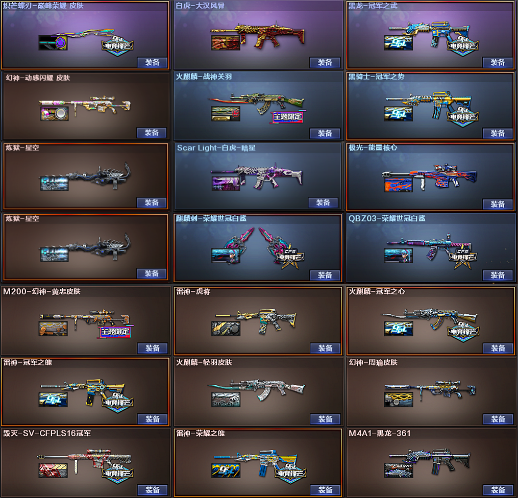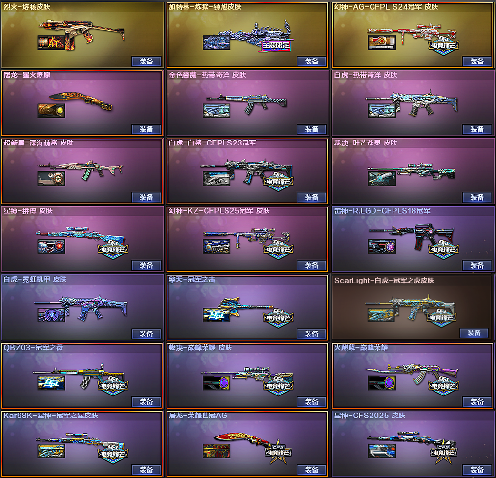 267豆★传说星骇艾丽莎夜影CFS拼搏冠军星神+卡天袭巅峰碟刃KZ幻神5皮+卡裁决3件套白虎5皮+卡