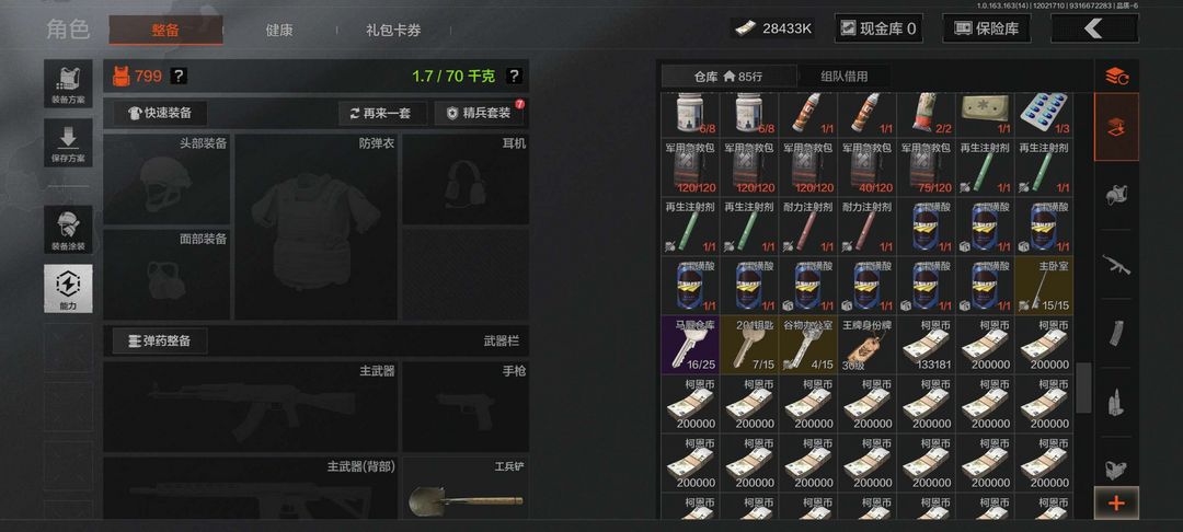 将近 3000万的纯币仓库里还有一堆装备和钥匙