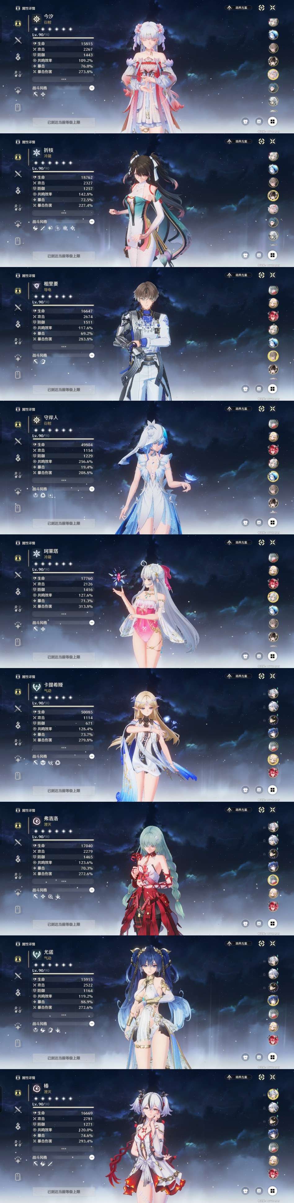三满命62椿62卡缇61忌炎31汐21守22尤,其余角色及练度展示看图为长图请点开看上号需连系发 码