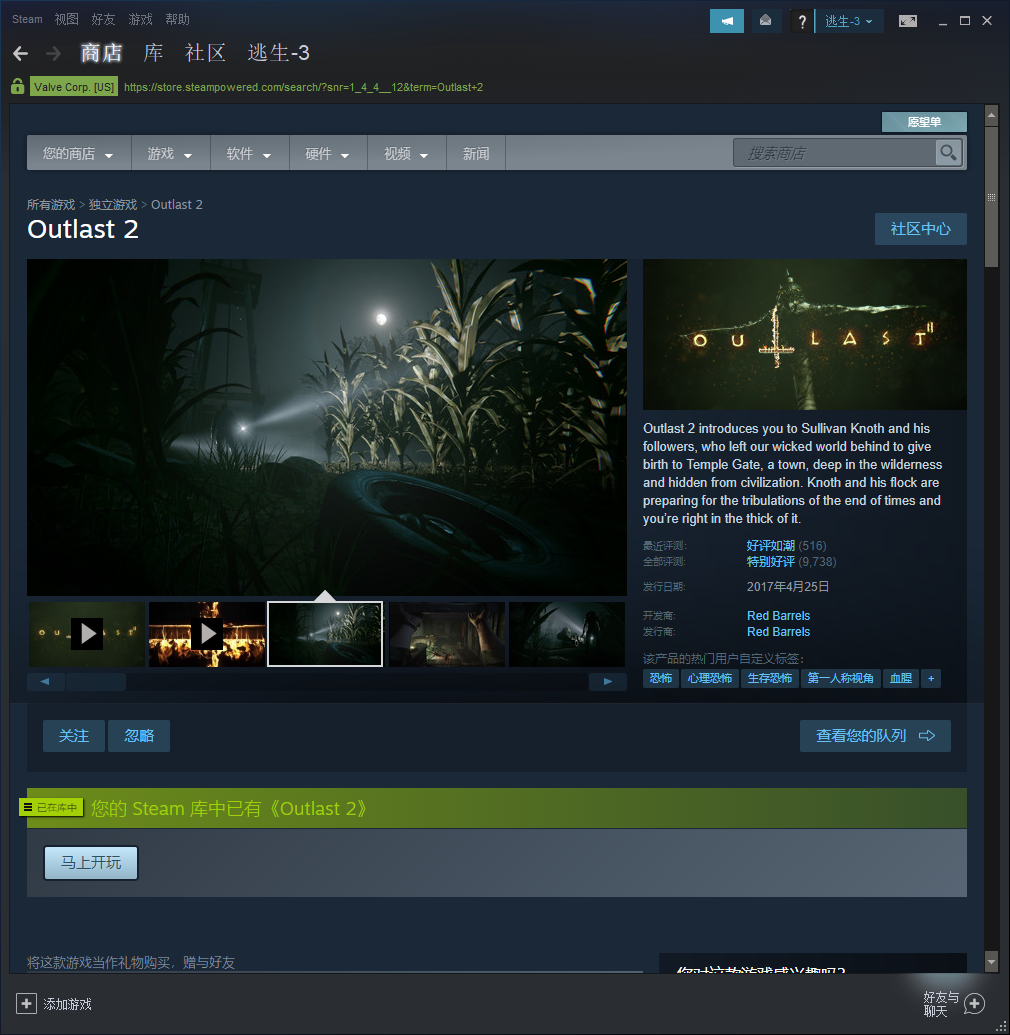 《逃生2-Outlast 2》终极版-全DLC!经典恐怖游戏!抢先体验!