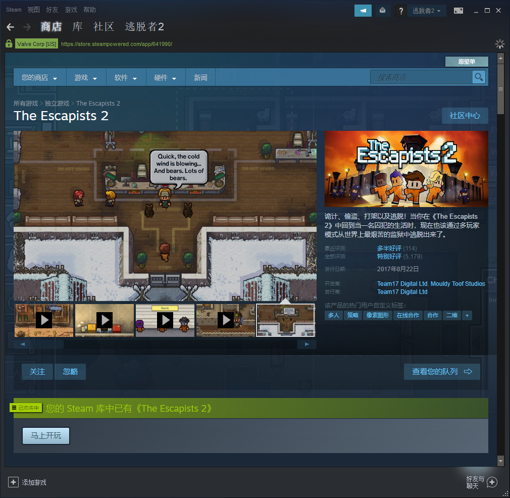 装备描述:《逃脱者2-The Escapists 2》本标题账号已互加好友!可直接联机!