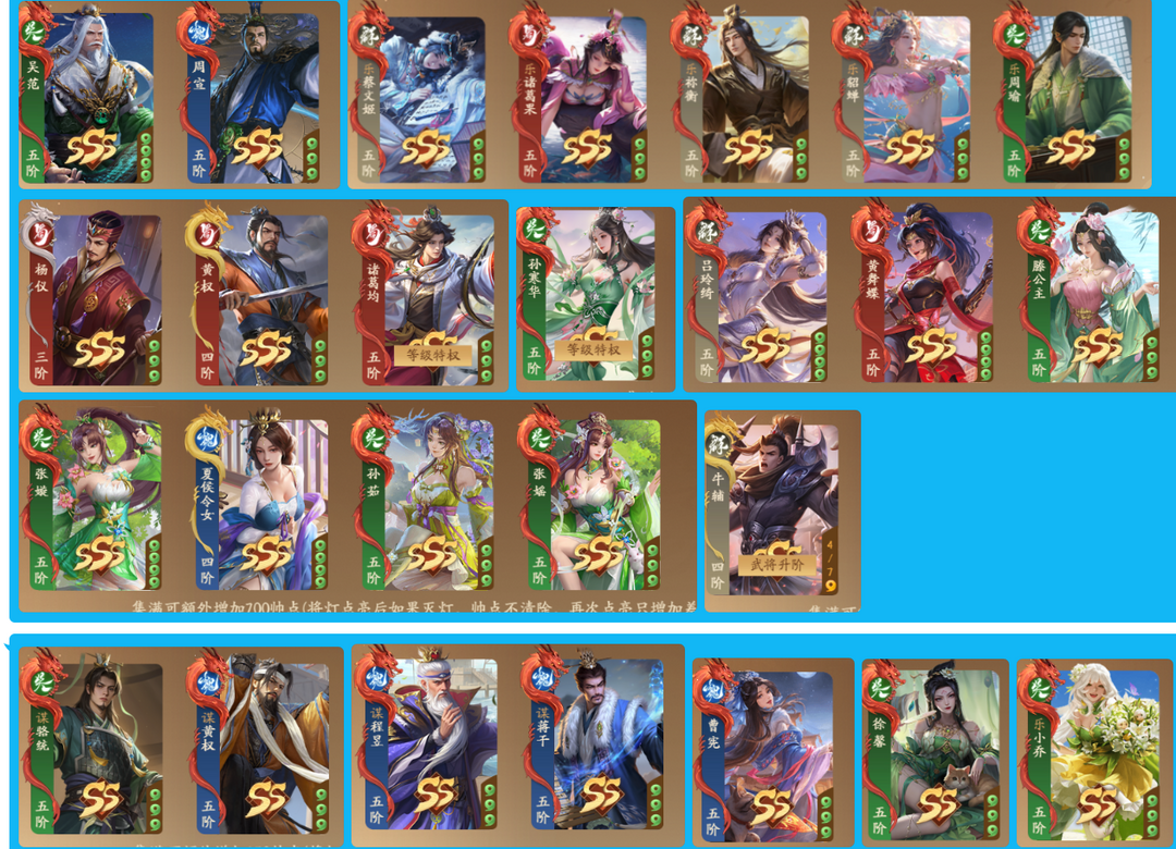 限制: 租号5次及以上 | 撤单率<70%才可租用此帐号装备描述:游卡官服账密登录,电脑手机都能玩(不分安卓苹果) 严禁使用宝玉、祈福灯、元宝等道具 金票可兑换豆子(恶意兑换拉黑),有专属客服可查询时间,不要抱侥幸心理 为保证账号信誉分,恶意掉分会被拉黑 斗地主恶意逃跑(除烧条局)也拉黑 举例特效皮肤:藤芳兰 许靖 诸葛京司马懿张琪嘤谋司马懿-神马超张飞张角姜维神华佗黄忠庞统