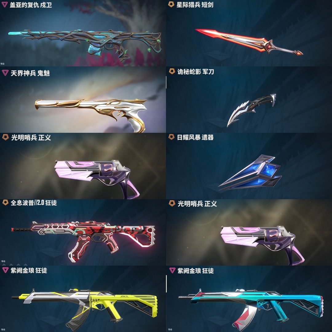 装备描述:可排✨25冠军套✨显卡狂徒✨掠影狂徒✨全息波普2.0狂徒✨盖亚的复仇戍卫✨侦察力量幻影✨紫阙金琅狂徒✨神中神罚幻影✨盖世英雄狂徒✨星际猎兵短剑✨日耀风暴遗器✨天界神兵鬼魅✨诡秘蛇影军刀✨光明哨兵正义✨带妹练手必备手感巨好✨