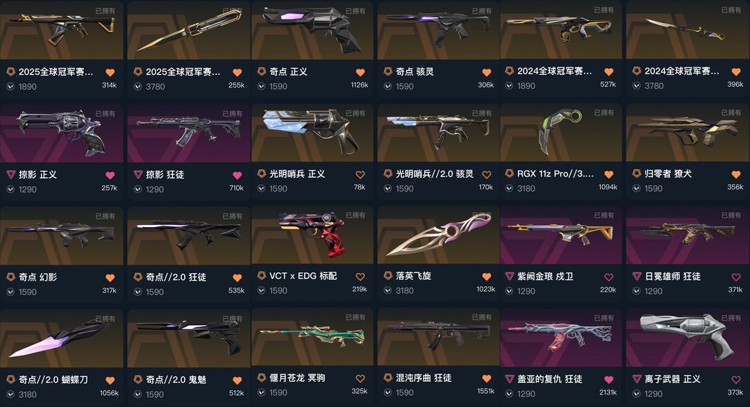 禁排❤️25冠军套★24冠军套★盖亚混沌掠影狮子★显卡爪落英飞旋蝴蝶刀★离子正义★紫金戍卫★苍龙冥狙