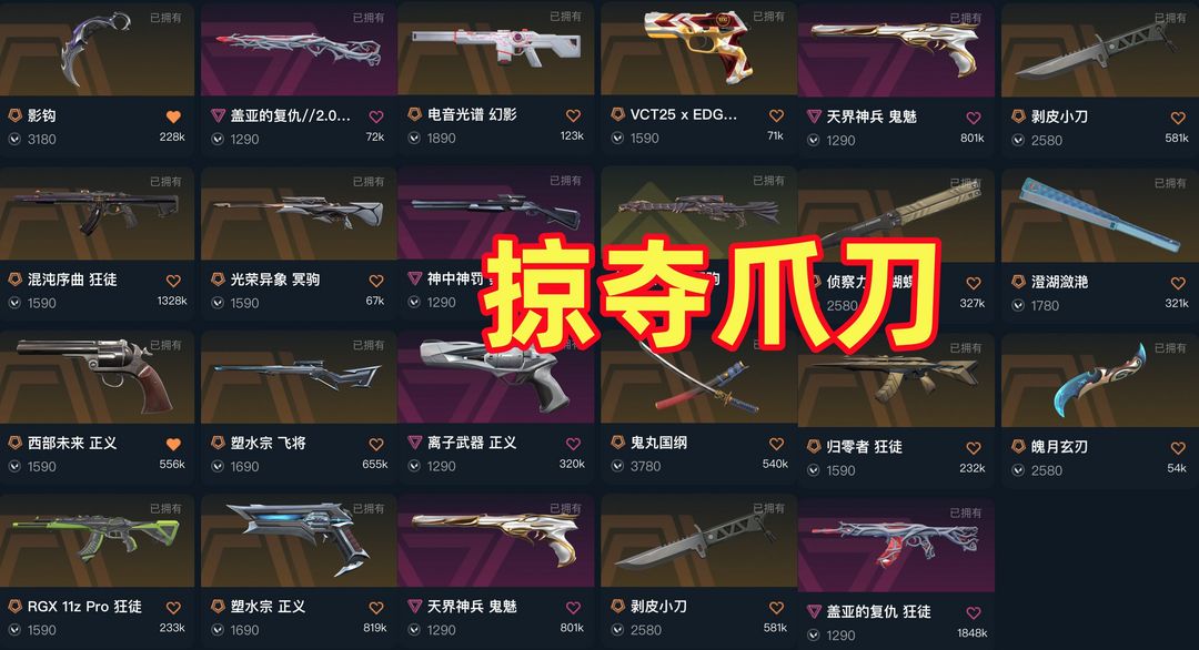 可排★掠夺爪刀影钩★剥皮小刀蝴蝶刀鱼扇兔刀太刀★混沌盖亚显卡狂徒★电音光谱幻影★离子正义★天界鬼魅