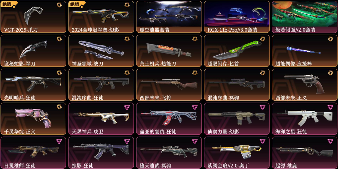 可排位大库存☆虚空套☆RGX套☆2024☆西部☆VCT☆混沌☆光明☆千灵☆紫金☆侦察☆盖各种炫彩散