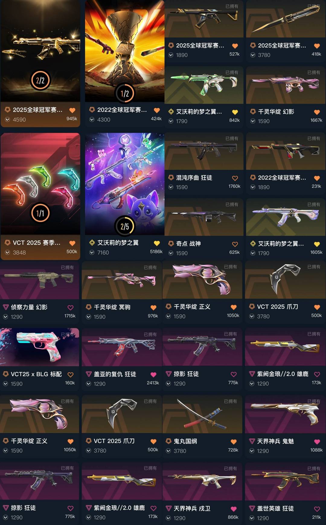 可排❤️极品25冠军套★猫猫梦之翼盖亚混沌掠夺猴子★vct爪刀太刀★千灵华绽侦察力量天界22冠军
