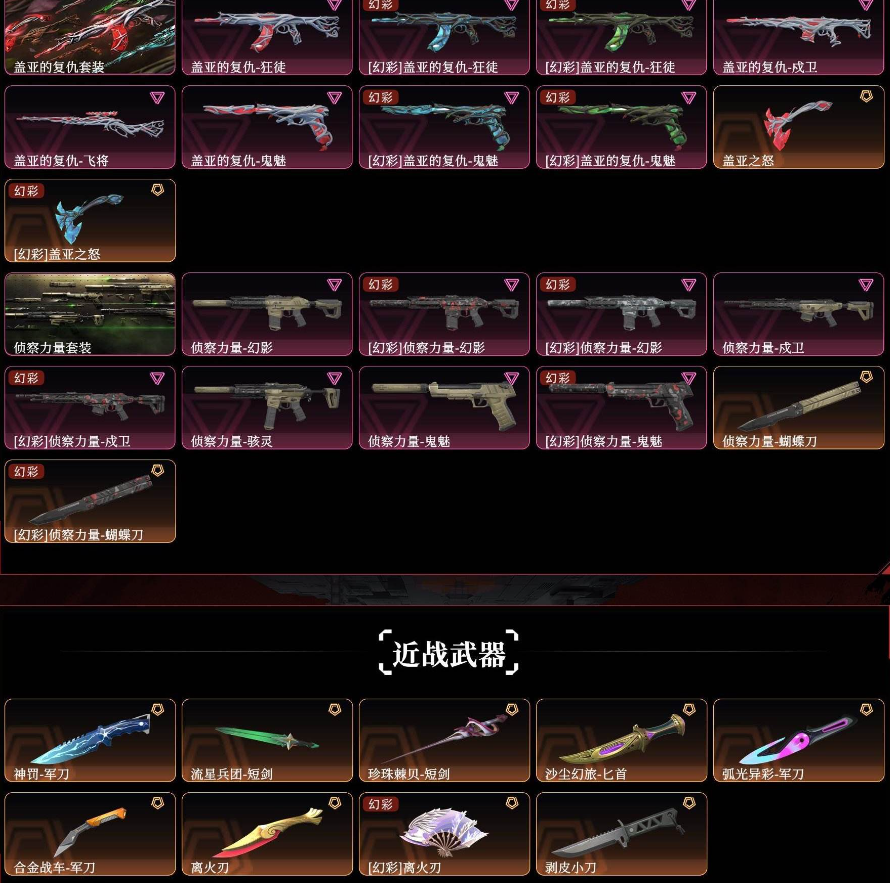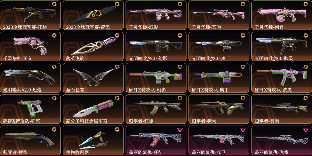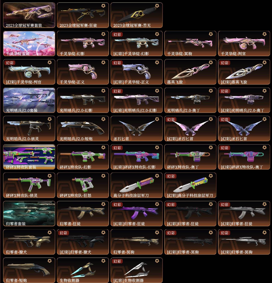 可排位☆离火刃☆2023全球套☆千灵套☆落英飞旋☆双城☆盖亚☆归零套☆光明套☆特工套☆鱼缸☆各种散件