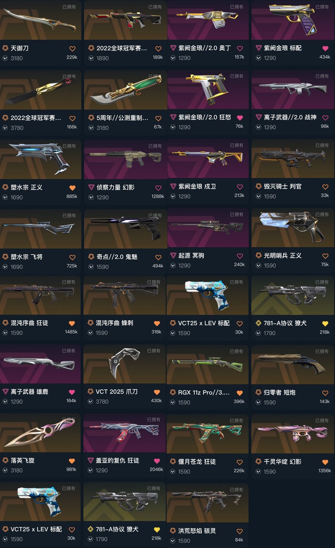 禁排✅混沌盖亚★苍龙之刃vct爪刀天御刀落英飞旋★22冠军千灵华绽莲花侦查力量★塑水宗正义★起源冥狙