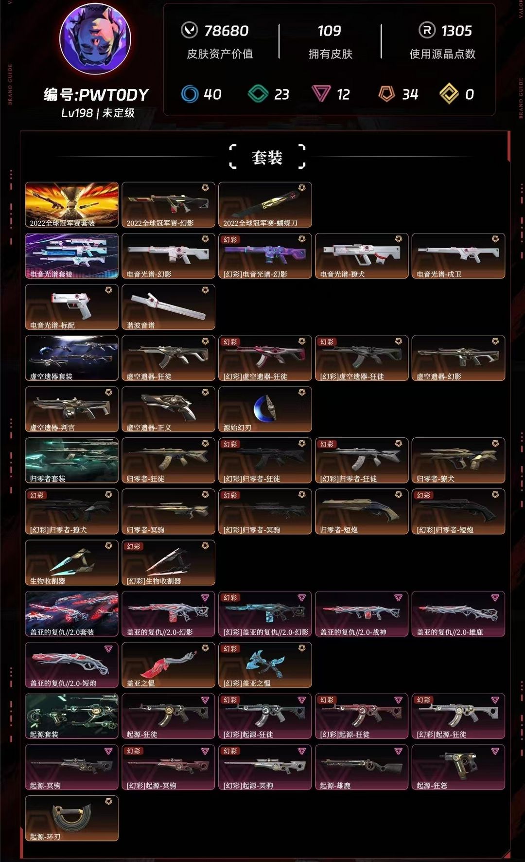 可排位❤22冠军套电音套虚空套归零者套盖亚套起源套❤光荣RGX盖亚狂徒❤诡秘刀弧光沙尘❤超多冥狙帅皮
