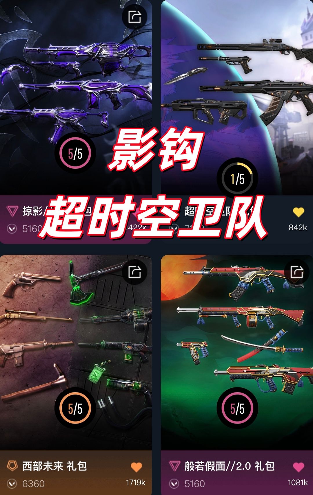 可排极品-影钩掠夺爪刀太刀 超时空卫队紫金塑水宗混沌狂徒 西部未来般若2侦查 离子大狙 vct标配