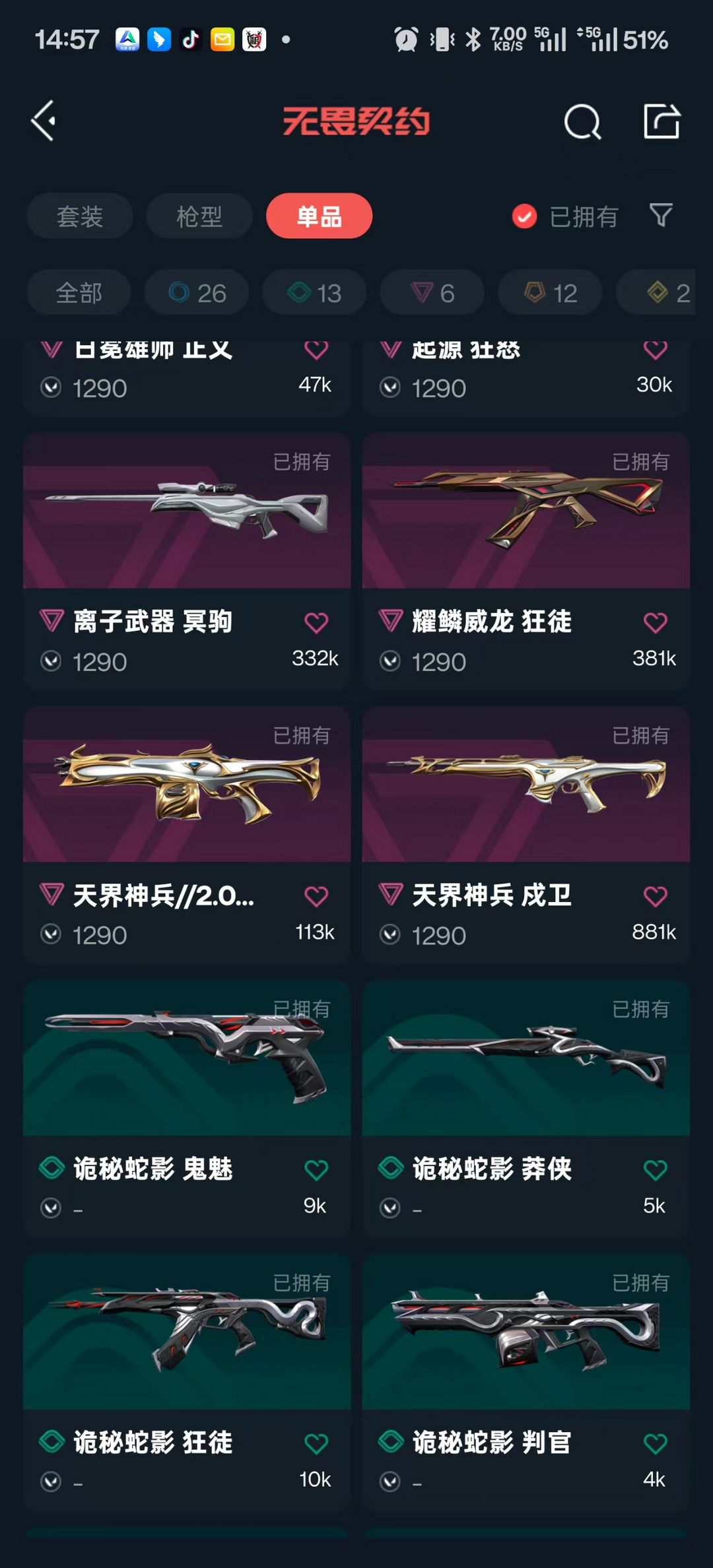 黑贴可排/冻结等2分钟/混沌哨兵威龙狂徒/电音虚空幻影/神罚刀/归零离子莽侠/混沌大狙/街机鬼魅/狮