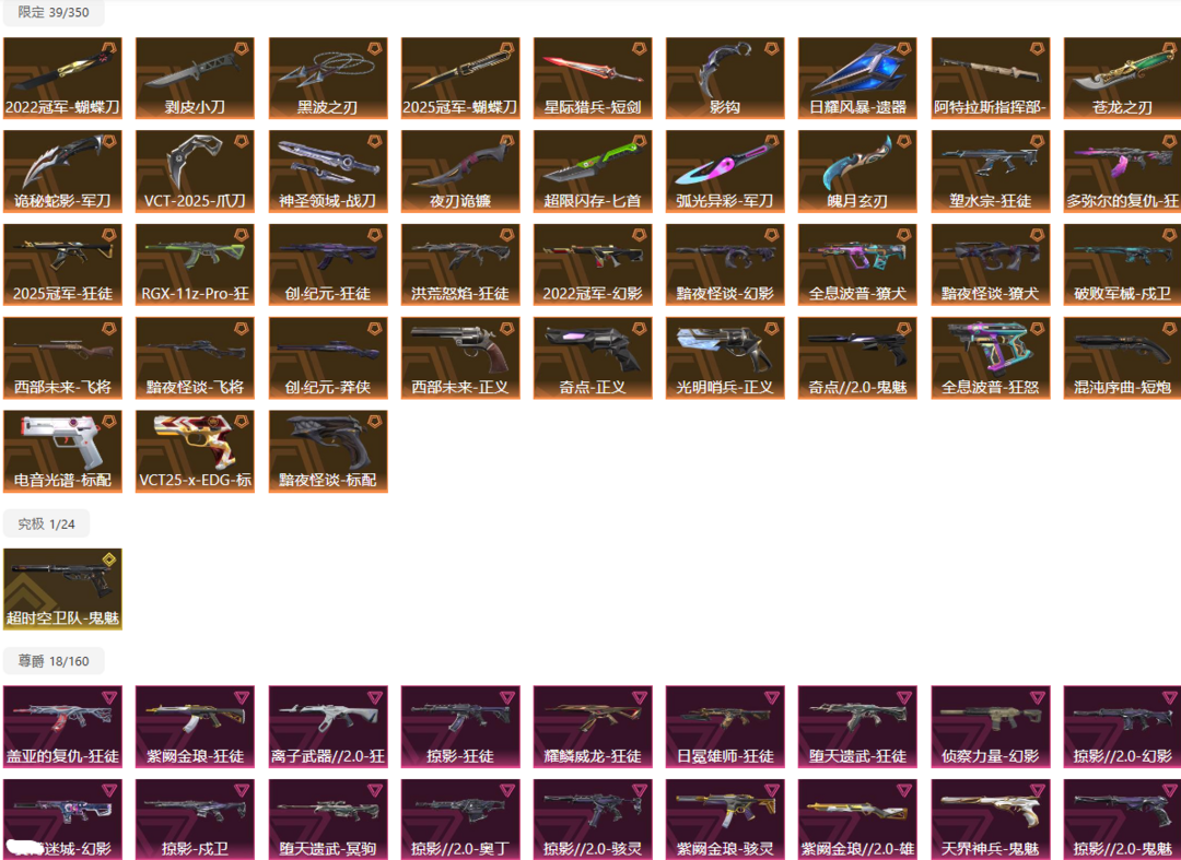 可排⚡冻结重登即解⚡10万库存⚡22/25套⚡黯夜套⚡黑波VCT苍龙刀⚡素水盖亚齐王侦查⚡详情看图