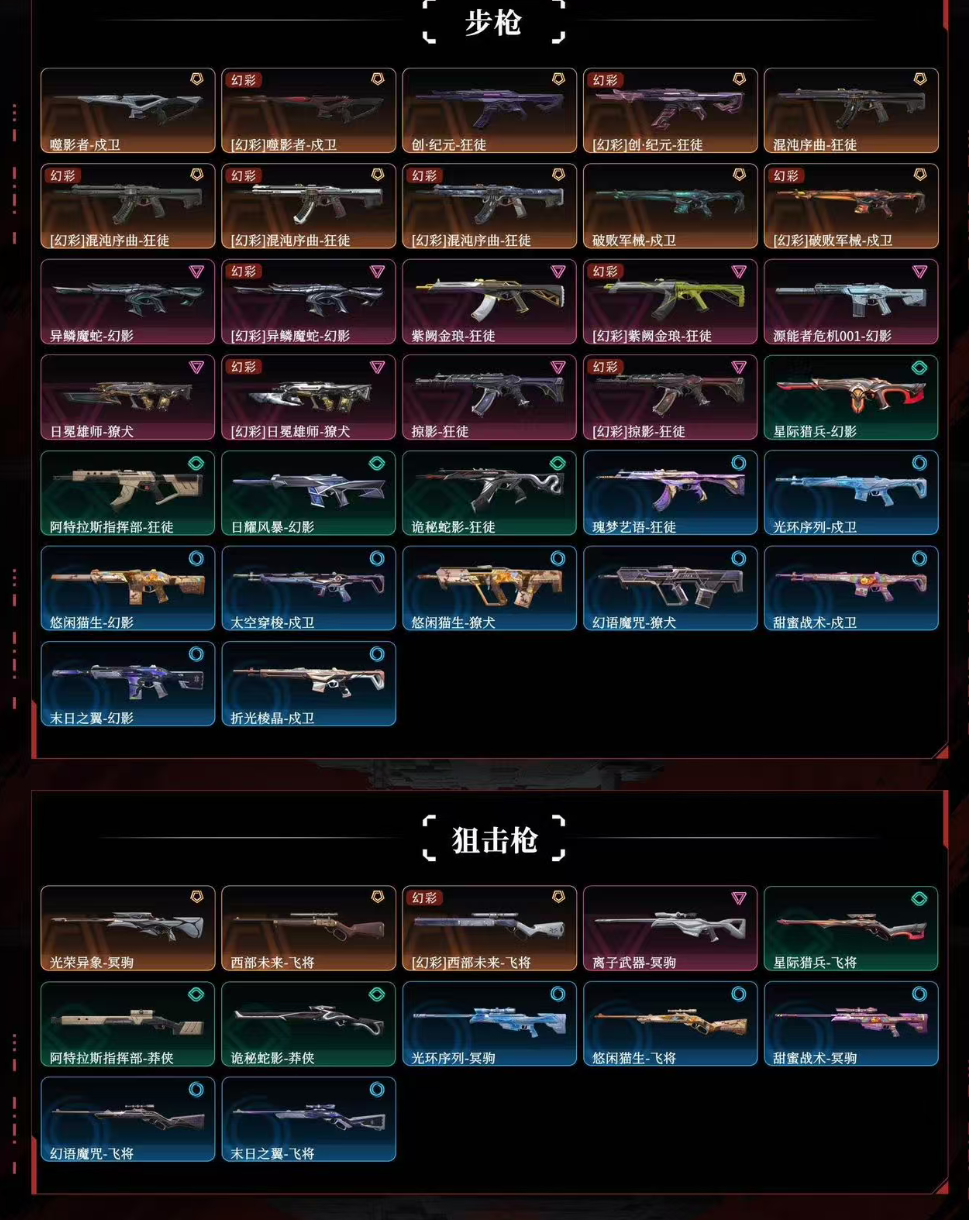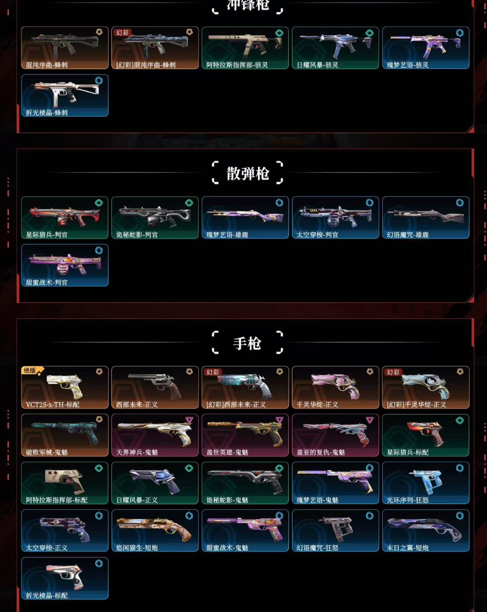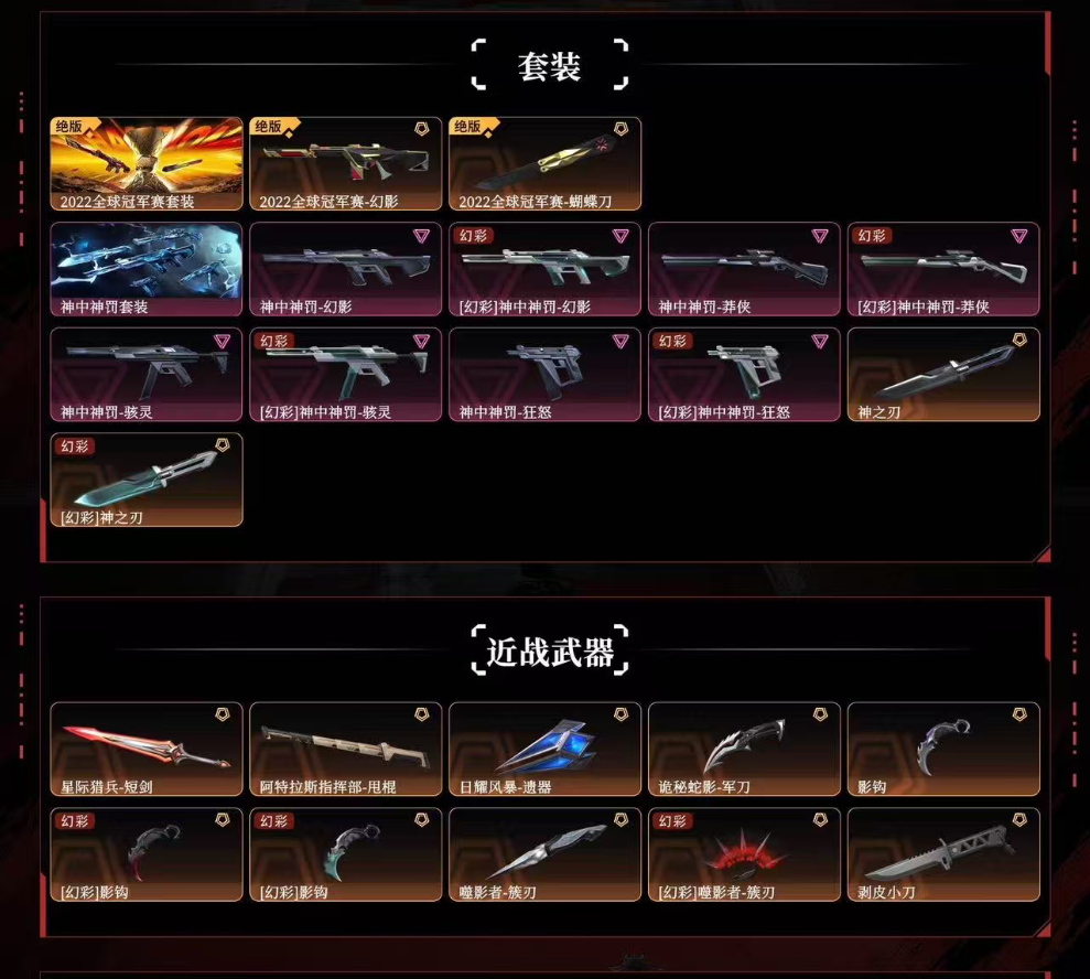 22冠军套♥神中神套♥剥皮刀♥簇刃♥噬隐纪元狂徒♥混沌紫金掠影狂徒♥破败军械♥魔蛇幻影光荣大狙