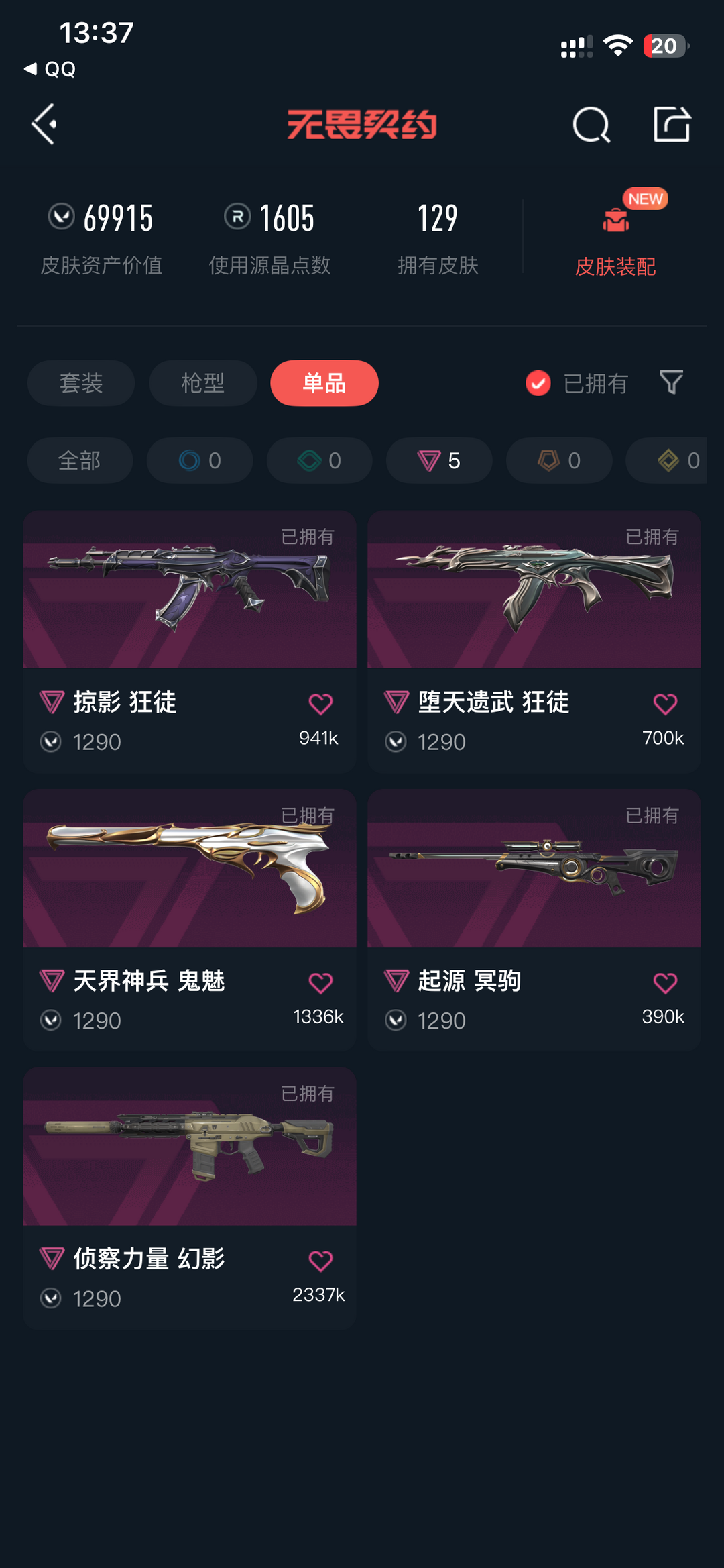 装备描述:本账号为无畏契约精品皮肤号,皮肤齐全度拉满: • 随身武器:黯夜怪谈标配全炫彩、光明哨兵正义全炫彩、西部未来正义多炫彩 • 步枪:黯夜怪谈幻影/獠犬、混沌序曲狂徒、奇点//2.0狂徒、西部未来幻影、虚空遗器狂徒、RGX 11z Pro狂徒,均为多炫彩配置 • 狙击步枪:起源冥驹、混沌序曲冥驹、黯夜怪谈飞将、西部未来飞将,全炫彩覆盖 • 机关枪:西部未来奥丁全炫彩 • 近战武器:夜刃诡镰、未来开拓者、VCT 2025爪刀、影钩,多炫彩可选 ✅ 可正常排位/匹配,皮肤手感拉满,适合上分/娱乐 ✅ 文明租号,禁止挂机/辱骂/开挂,违规将封号处理 ✅ 账号信息真实,无任何虚假宣传,放心租用