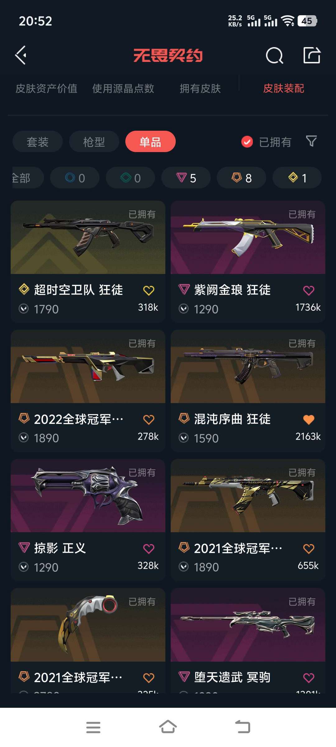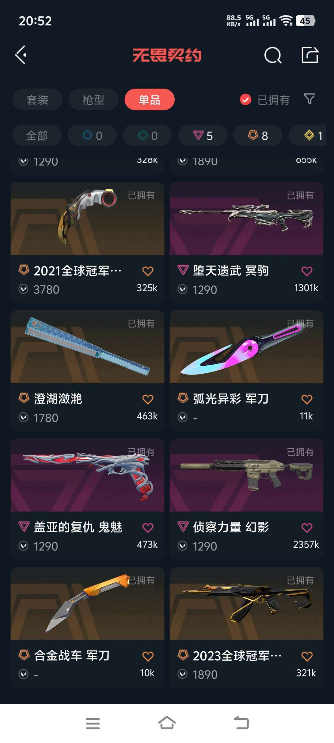 21 23冠军狂徒,紫金狂徒,超时空狂徒。22冠军幻影,侦查幻影。