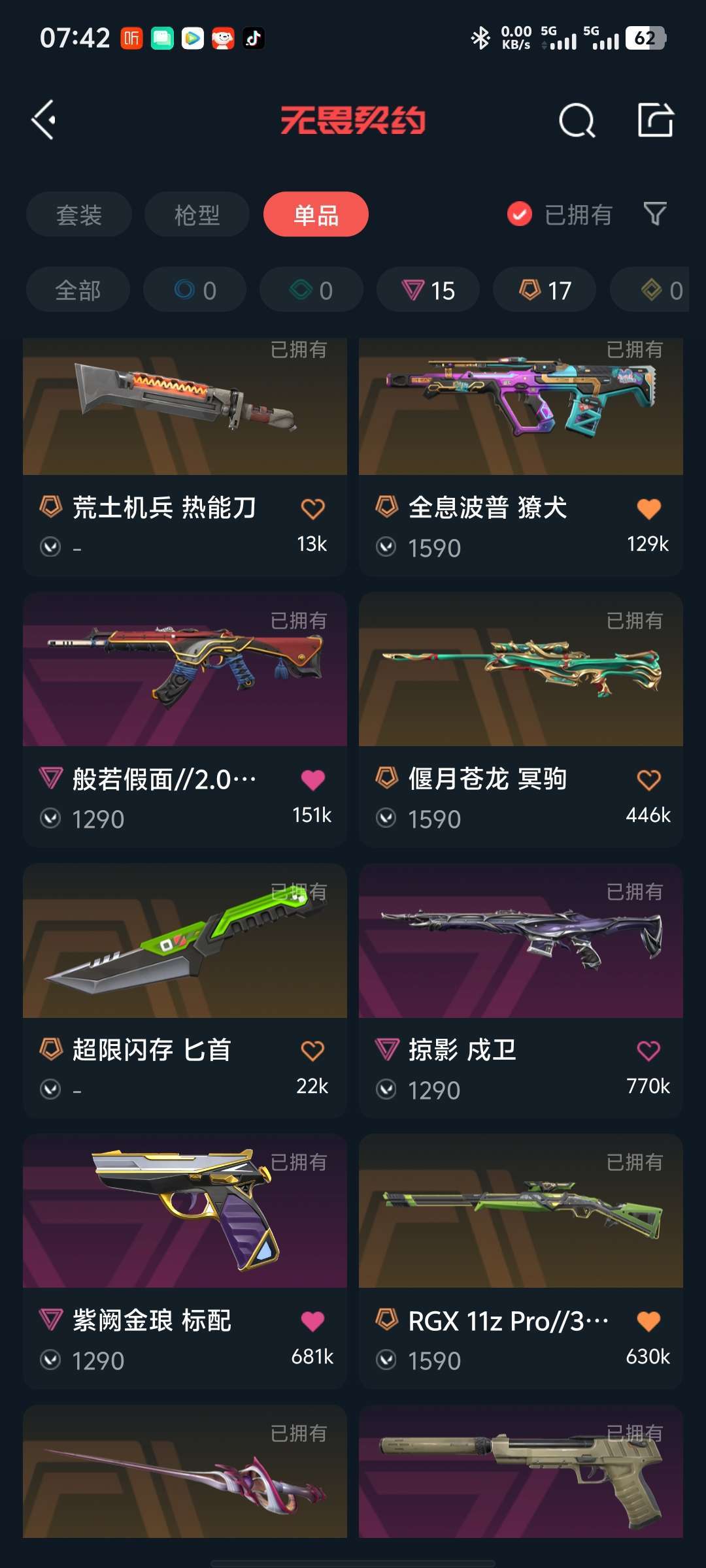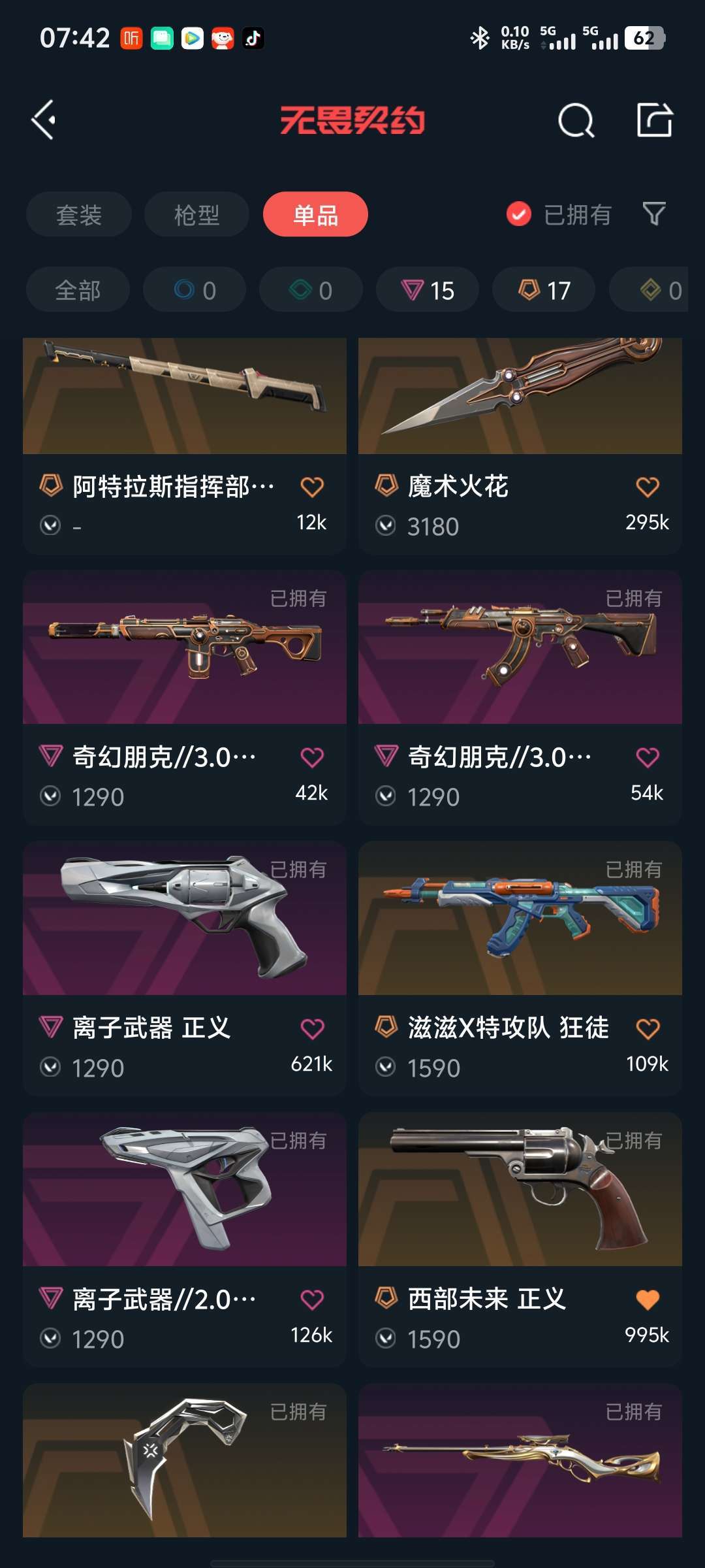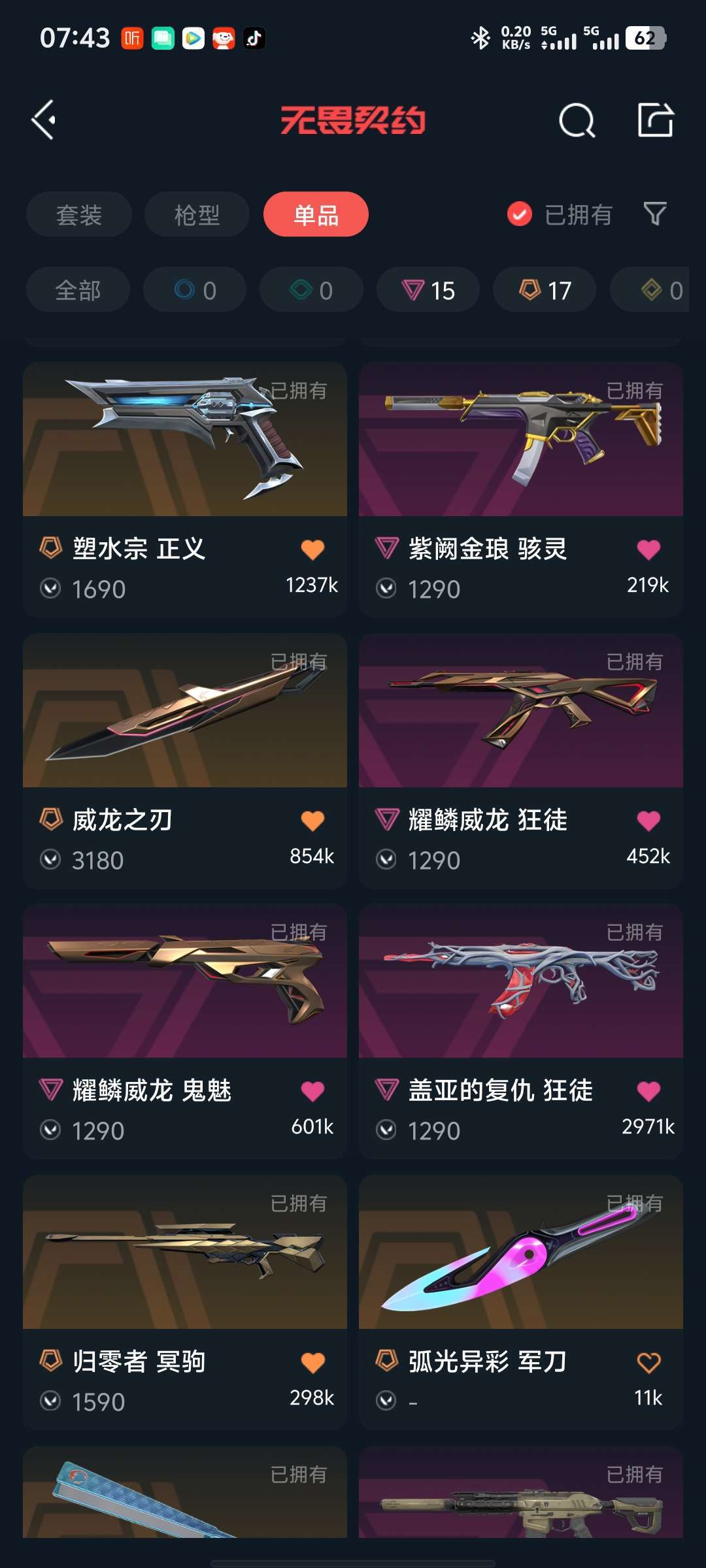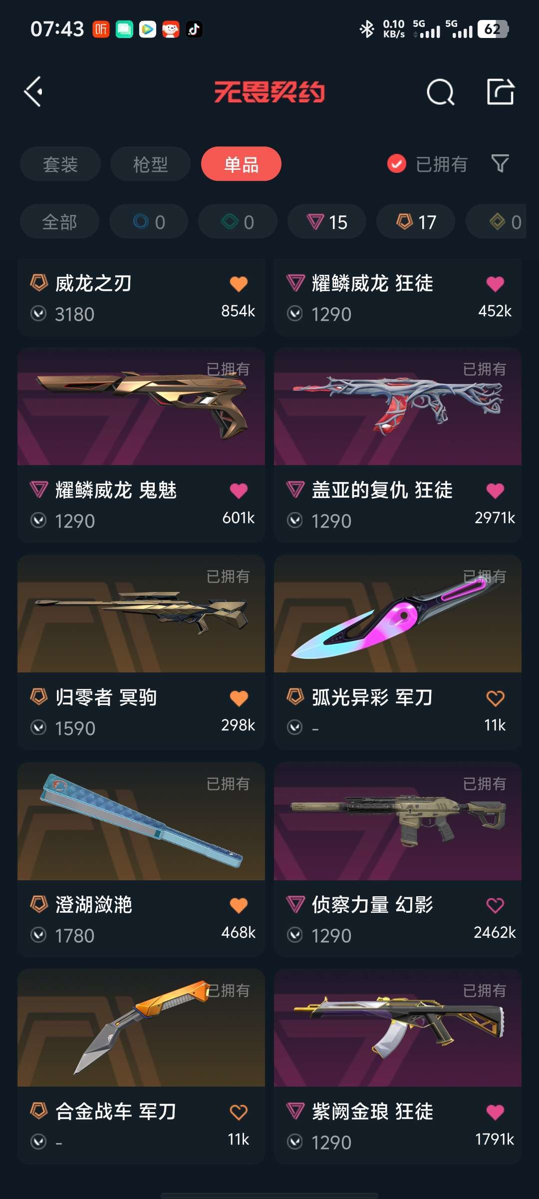117皮肤⭐威龙套⭐电光蝴蝶套⭐VCT爪刀⭐扇子⭐离子正义⭐西部正义⭐溯水宗正义⭐显卡盲侠⭐龙狙