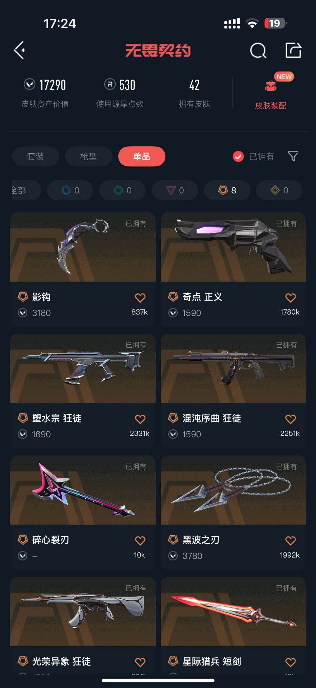 武器皮肤数量:42
