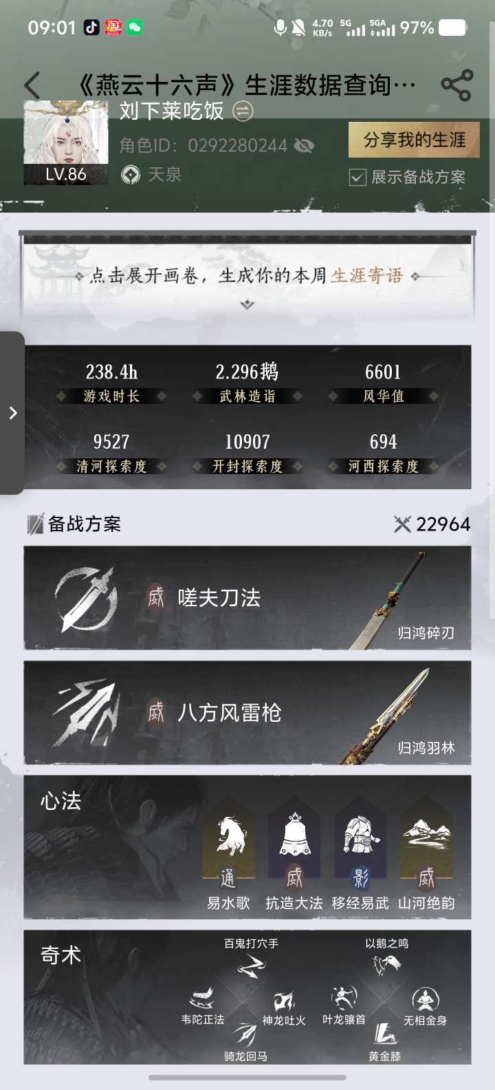 89级乐神师延号,装备齐全,清河、开封探索度高 看图上号