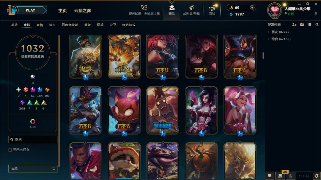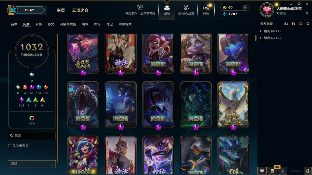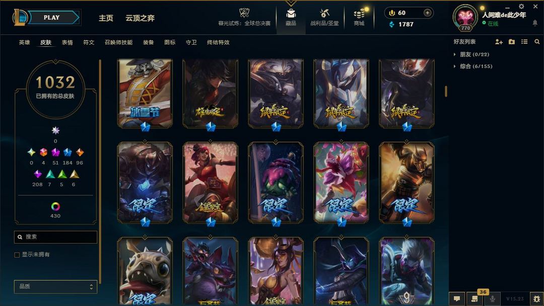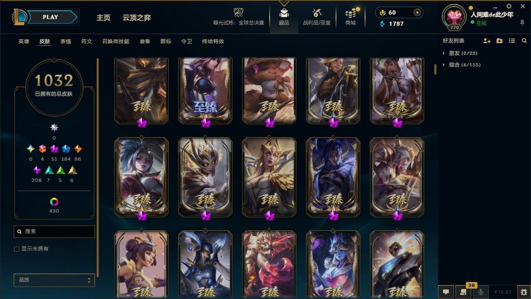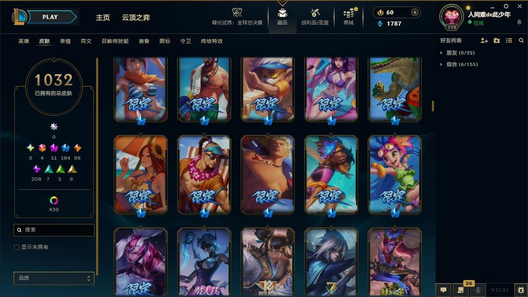 【小东】1500P禁排位乄1032原皮乄430炫彩乄25臻彩乄51神话乄184限定