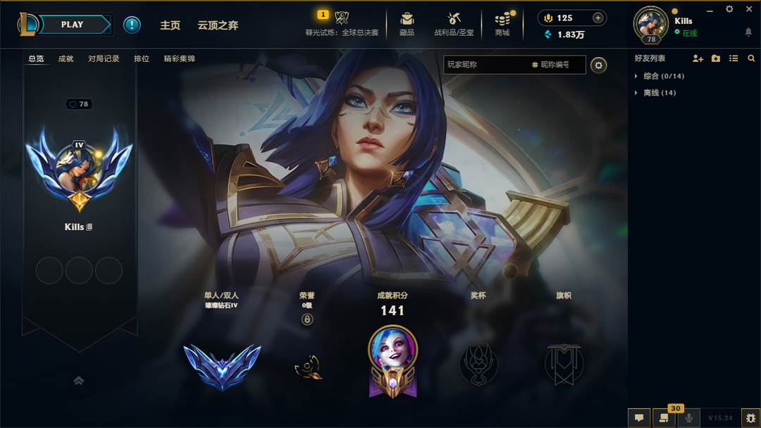 段位:78级 璀璨钻石IV
