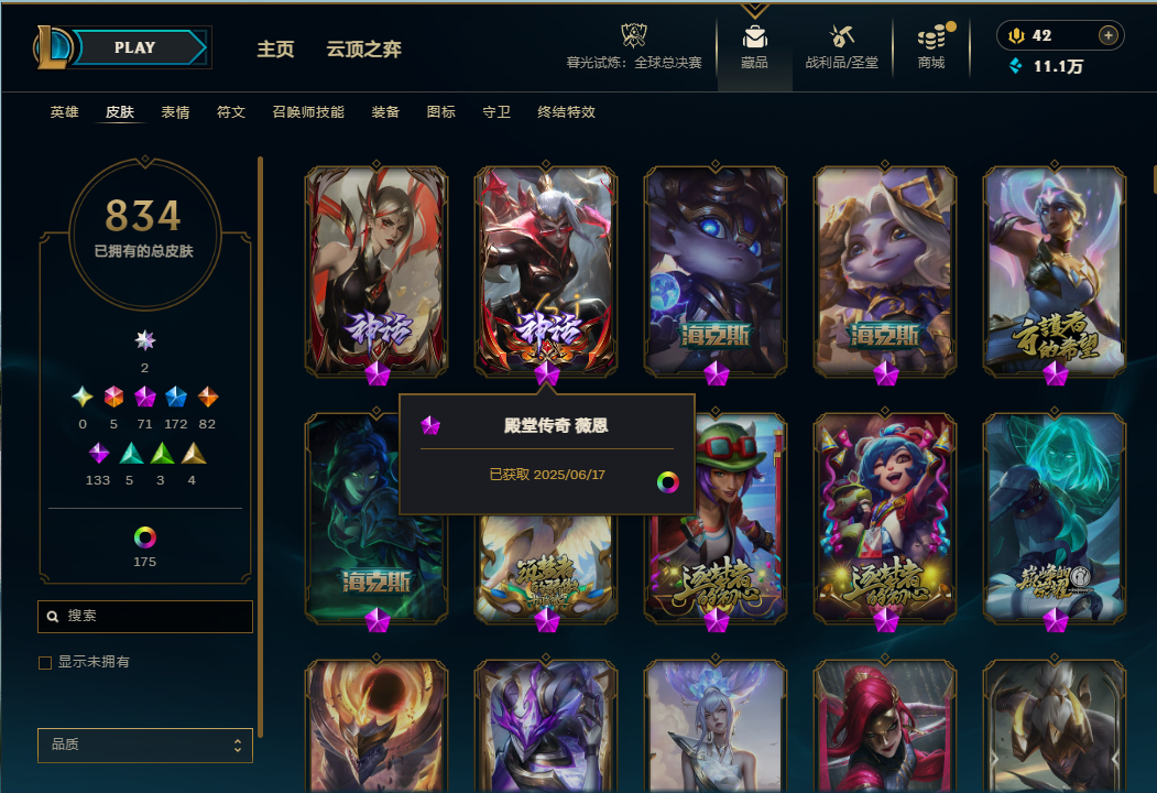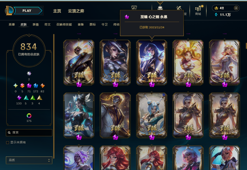 834p❤uzi签名版殿堂传奇❤ad皮肤超多至臻皮肤各种限定