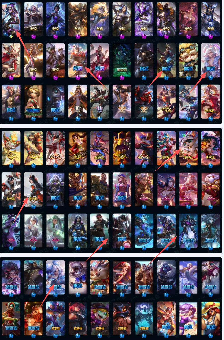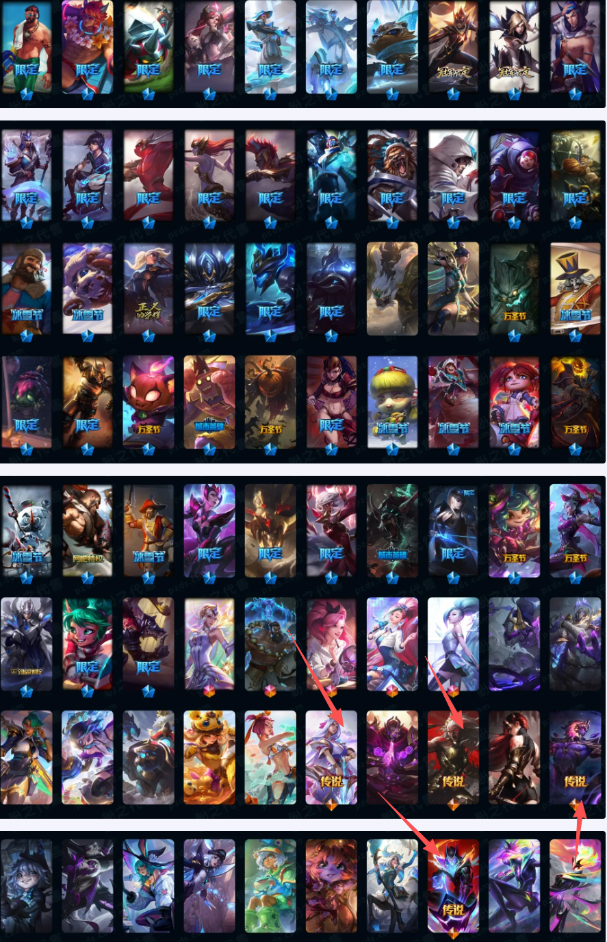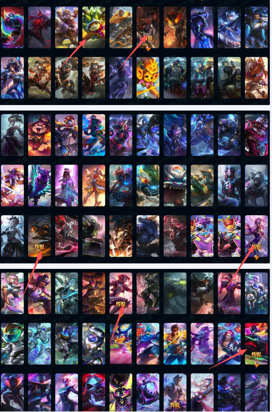 联盟四区1431皮⚡圣堂金克斯双城全套⚡最新龙马踏雪春节套全套⚡圣天龙最新皮肤全是单买如图