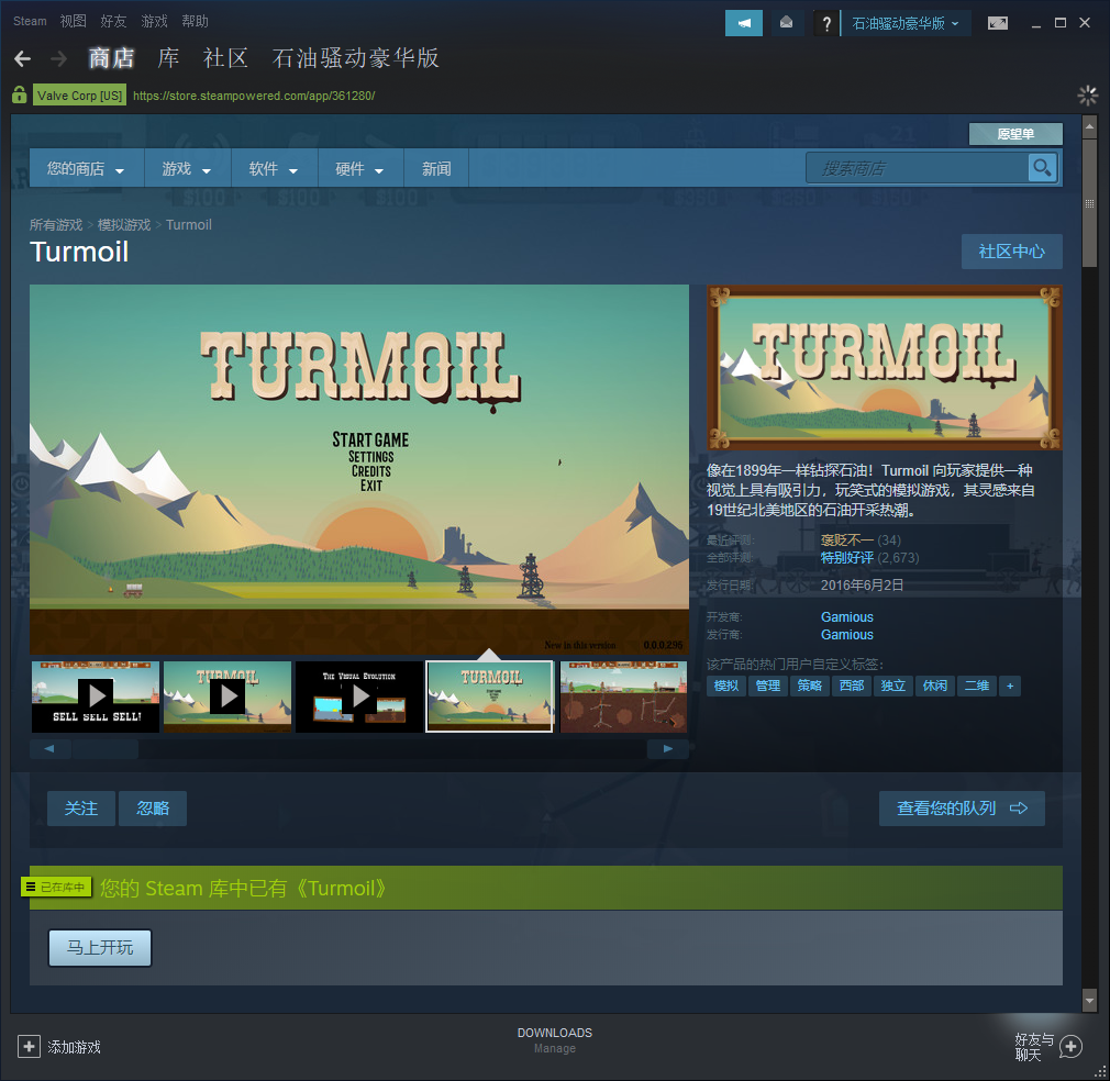 装备描述:像在1899年一样钻探石油!Turmoil 向玩家提供一种视觉上具有吸引力,玩笑式的模拟游戏,其灵感来自19世纪北美地区的石油开采热潮。