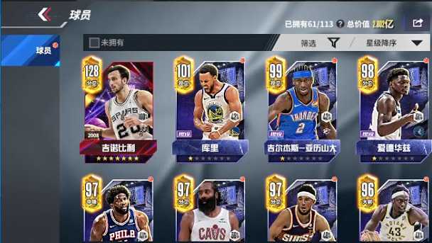 七星满配吉诺比利❤库里❤亚历山大❤爱德华兹