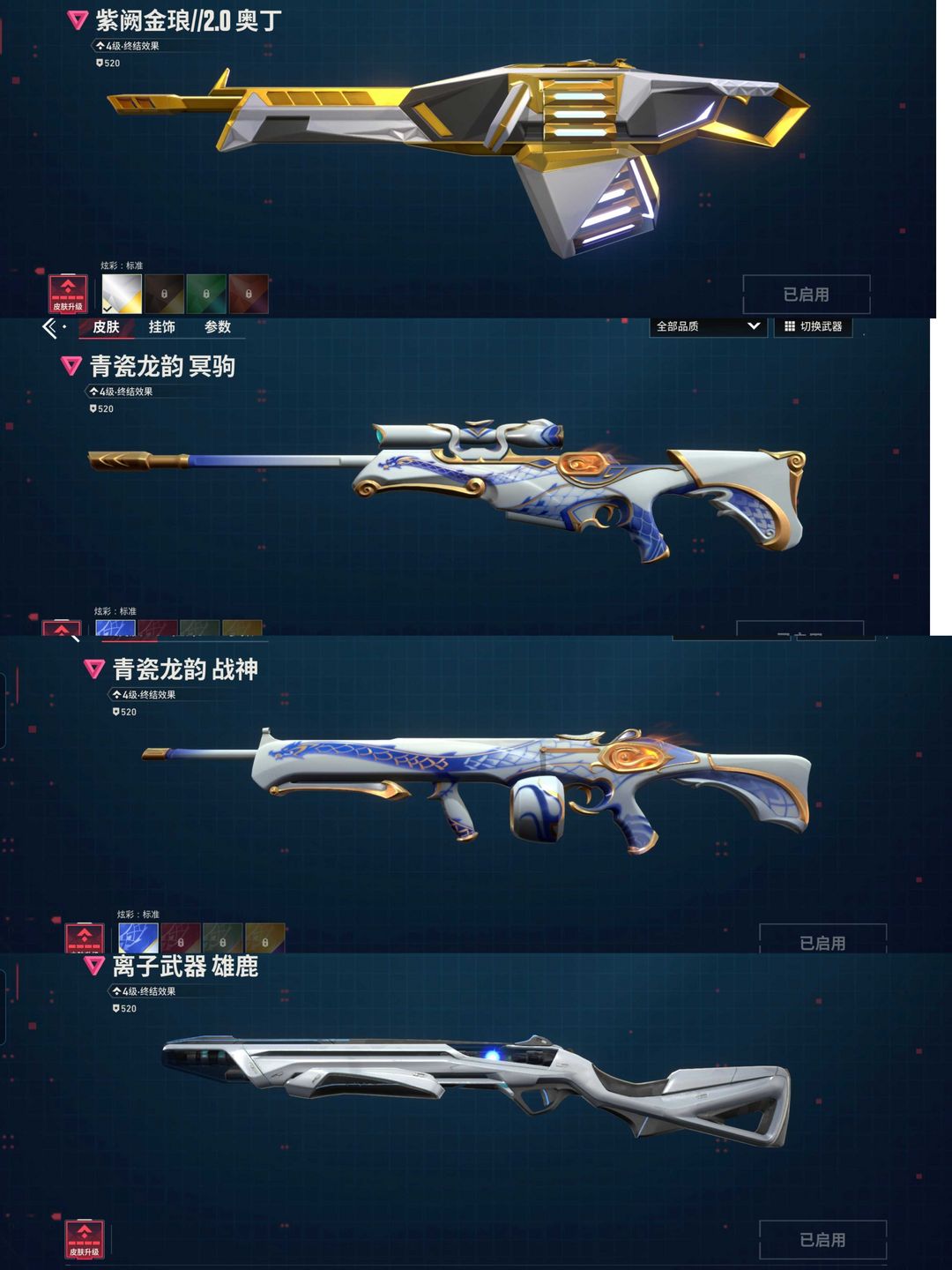5幻影:怒海/超限/离子/青龙瓷/紫阙⭐狂徒:艾沃利/偃月/光明/耀麟/堕天⭐近战:威龙/沧澜戟