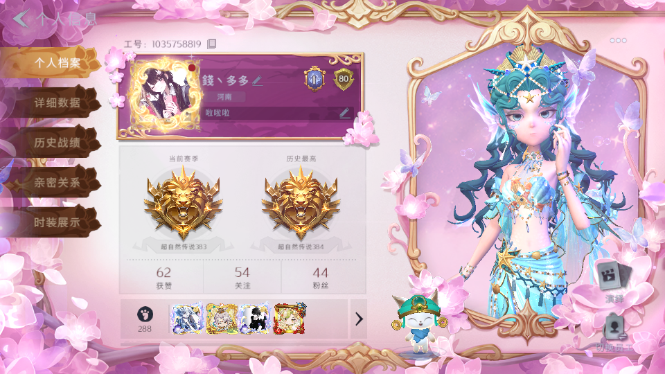 限制: 撤单率<30%才可租用此帐号装备描述:小黄 炽天使,薇薇安海月息潮,莉莉瑶台梦,燕燕于飞