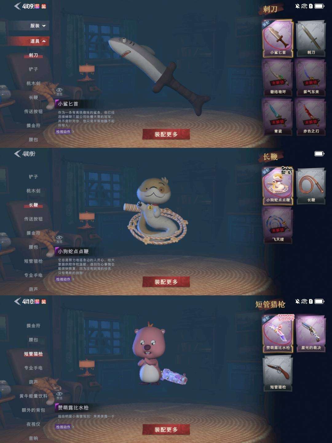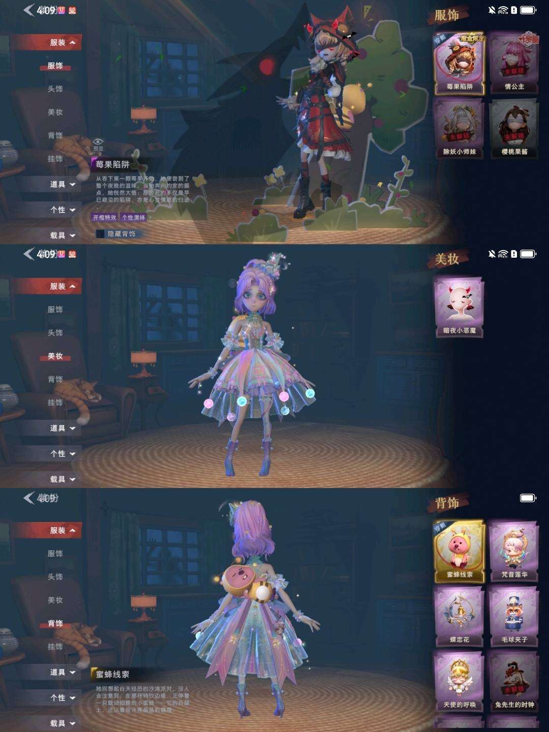 装备描述:【幻梦皮肤】巫铃儿-镜生遗梦 【金色皮肤】逍遥-莲华渡、薇薇安-圣光之谕、小黄-遗失的童话、巫铃儿-镜花辞 【紫色皮肤】莉莉-莓果陷阱、阿念-王子与骑士、爱丽丝-丝缕哀歌 【道具皮肤】桃木剑-凤鸣九天、摸金符-紫霄、腰包-惊魂娃娃、铲子-赞萌波板糖、短管猎枪-赞萌露比水枪、腰包-宝剑八、摸金符-祝祷词、葫芦-伏妖塔、夜视仪-金丝眼镜、铲子-龙鳞、电击枪-甜蜜泡泡枪、急救包-蔷薇物语、短管猎枪-星光的裁决、转轮手枪-新星时代、传送按钮-昆仑镜、黄牛能量饮料-珍珠芭乐莓莓、音响-happy猫、传送按钮-幻宠之门、长鞭-小狗蛇点点鞭、额外的背包-飞花令、铲子-圣心之泪、刺刀-小鲨匕首、黄牛能量饮料-青玉抱丹、背饰-蜜蜂线索、背饰-梵音莲华、背饰-天使的呼唤、背饰-蝶恋花、背饰-毛球夹子 【美妆】暗夜小恶魔