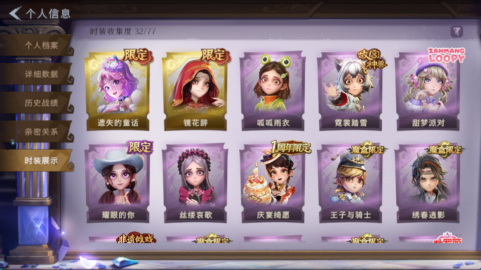 装备描述:皮肤:小黄-遗失的童话,巫铃儿-镜花辞,薇薇安-黑月挽歌,爱丽丝-耀眼的你,爱丽丝-甜梦派对,艾伦-黎明猎手,小黄-呱呱雨衣,薇薇安-仙锋小姐,爱丽丝-丝缕哀歌,逍遥-绣春逍影,小黄-霓裳踏雪,爱德华-梵卓之礼,阿念-庆宴绮愿,阿念-王子与骑士,莉莉-莓果陷阱,莉莉-情公主,巫铃儿-素影瑶光,临云-织锦云程,兰-千夜星谕;道具:转轮手枪-新星时代,喷气背包-乘风溯雪,闪光弹-金戈玄铜,传送按钮-浮生一梦,传送按钮-幻宠之门,夜视仪-金丝眼镜,摸金符-紫霄,音响-咏叹调,摸金符-祝祷词,桃木剑-永眠曲,短管猎枪-星光的裁决,急救包-蔷薇物语,音响-鸣沙鼓,黄牛能量饮料-青玉抱丹,额外的背包-飞花令,腰包-红运福虎,专业手电-花束般的告白,长枪-罪棘,传送按钮-昆仑镜,音响-happy猫,刺刀-碧络琅环,铲子-龙鳞,音响-月光奏鸣曲,专业手电-云端梦想计划,急救包-末章心跳,长鞭-缚誓之锁,除颤仪-冰晶般的代价,铲子-圣心之泪,桃木剑-凤鸣九天,摸金符-花落精绝;美妆:美妆-暗夜小恶魔,美妆-萌兔气泡;饰品:头饰-滑稽头套,头饰-饺饺者头套,头饰-驼半仙头套,头饰-嘻嘻头套,头饰-烈焰红唇