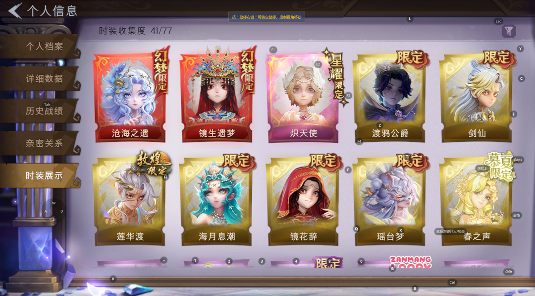 限制: 撤单率<68%才可租用此帐号装备描述:2红1幻梦7金23紫 幻梦皮肤:巫铃儿-镜生遗梦、薇薇安-沧海之遗 金色皮肤:巫铃儿-镜花辞、逍遥-莲华渡、零-渡鸦公爵、莉莉-瑶台梦、逍遥-剑仙、薇薇安-海月息潮、兰-春之声 紫色皮肤:小黄-异色序曲、小黄-呱呱雨衣、爱丽丝-丝缕哀歌、零-青云逸歌、阿念-王子与骑士、逍遥-泽引山海、逍遥-绣春逍影、薇薇安-黑月挽歌、莉莉-除妖小师妹、莉莉-莓果陷阱、爱丽丝-甜梦派对、薇薇安-仙锋小姐、零-搬开山、兰-千夜星谕、艾伦-黎明猎手、阿念-庆宴绮愿、爱丽丝-耀眼的你、零-磨砺成锋、爱德华-梵卓之礼、逍遥-万迭云华